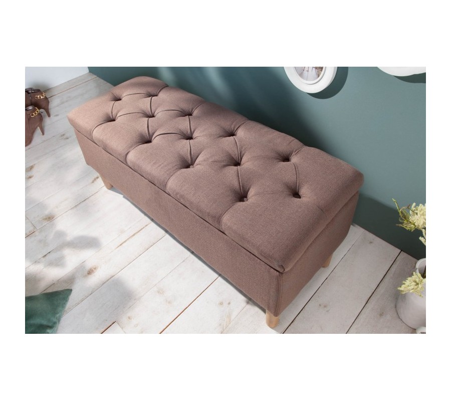 Škandinávska hnedá taburetka Rikke s úložným priestorom a nožičkami 100cm