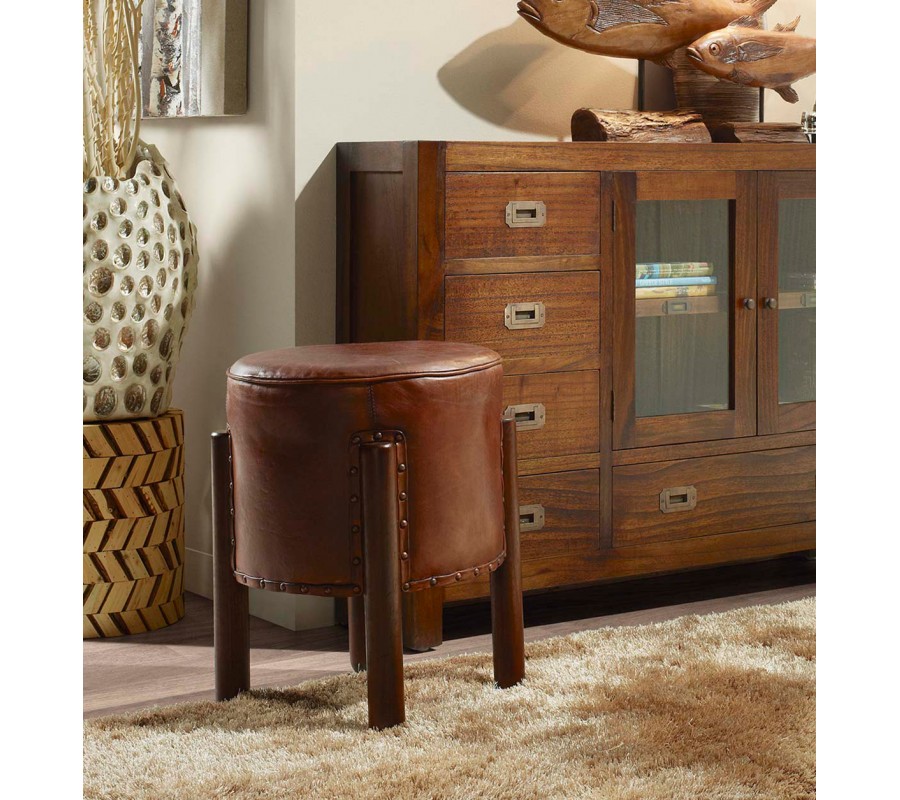 Štýlový taburet Moycor je potiahnutý kožou prírodného vzhľadu, ktorú dopĺňaju nohy z kvalitného masívneho dreva a kovové detaily. Táto kombinácia materiálov spolu s farebným prevedením v teplom, hnedom odtieni robí z tohto taburetu kúsok, ktorý zaujme a poteší nejedného milovníka koloniálneho štýlu.