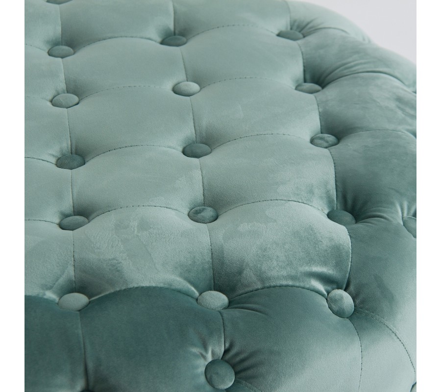 Chesterfield okrúhly taburet Todi v zelenomodrom zamatovom poťahu 80cm