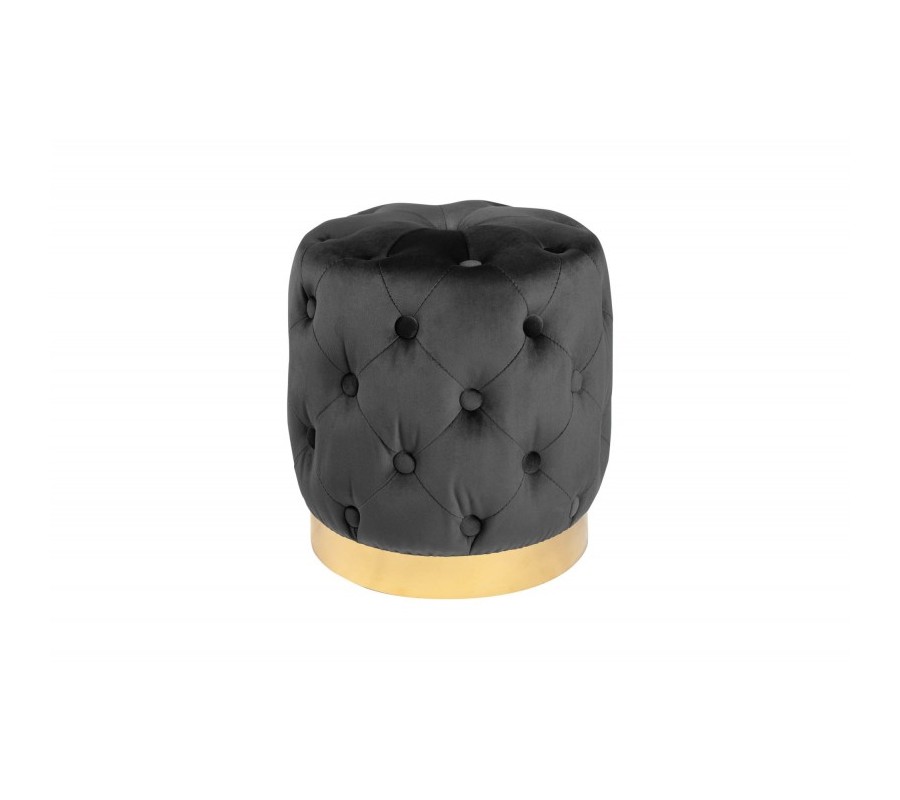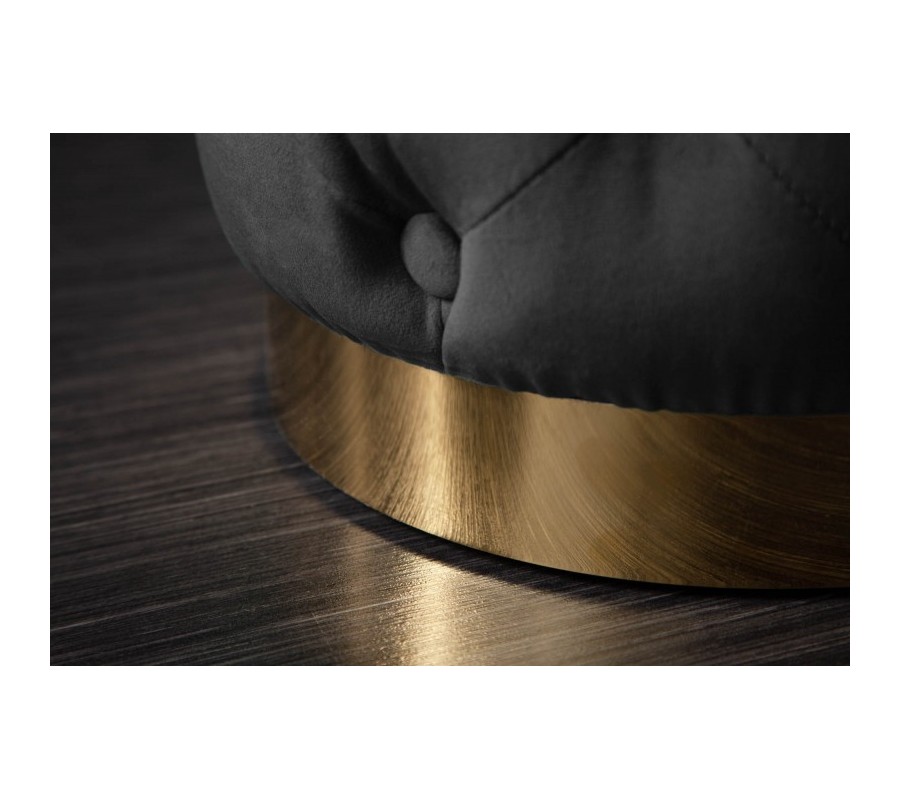 Štýlová kruhová taburetka Modern Barock zaujme najmä vďaka svojmu elegantnému prevedeniu. Zlatý kovový podstavec je doplnený čiernym čalúnením z príjemného zamatu. Poťah je zároveň obohatený nadčasovým chesterfield prešívaním, ktoré dodáva taburetke štýlový barokový nádych. Luxusne pôsobiaca taburetka Modern Barock skvelo vynikne v elegantných obývačkách zariadených v tmavších farbách s rôznymi kovovými doplnkami a dekoráciami v zlatých odtieňoch.