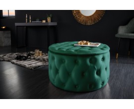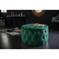 Dizajnová kruhová taburetka do obývačky Modern Barock v zelenej farbe so zamatovým čalúnením 75cm