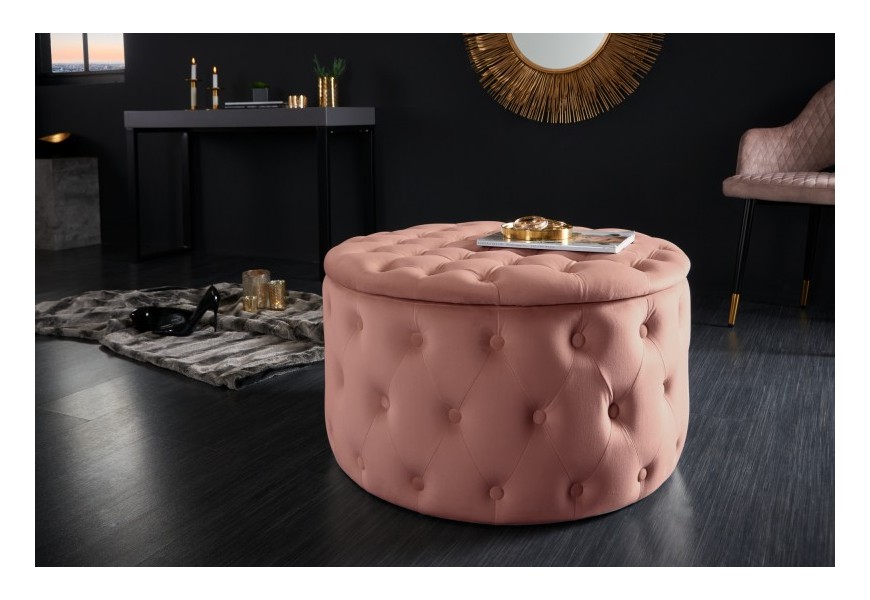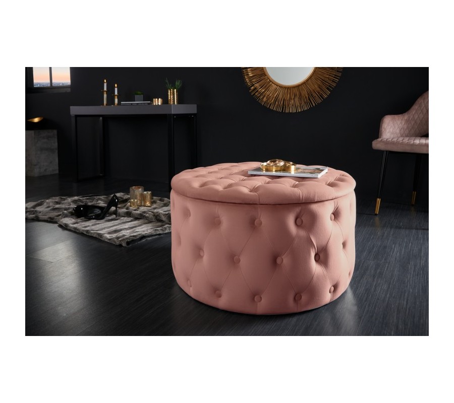 Štýlová taburetka Modern Barock je dokonalým doplnkom každej modernej obývačky. Taburetka kruhového tvaru zaujme svojou jemnou a elegantnou staroružovou farbou a príjemným zamatovým čalúnením, ktoré dopĺňa klasické chesterfield prešívanie. Vnútro taburetky je možné využiť ako praktický úložný priesor na vankúše, deky či iné predmety. Elegantný dizajn príjemne doplní priestory obývačiek ladených v modernom alebo art-deco štýle. Vďaka svojej jemnej farebnosti sa hodí do svetlejších aj tmavších priestorov, ktoré zaručene rozžiari a spríjemní. Taburetka Modern Barock bude skvelým praktickým a vkusným doplnkom vášho interiéru!