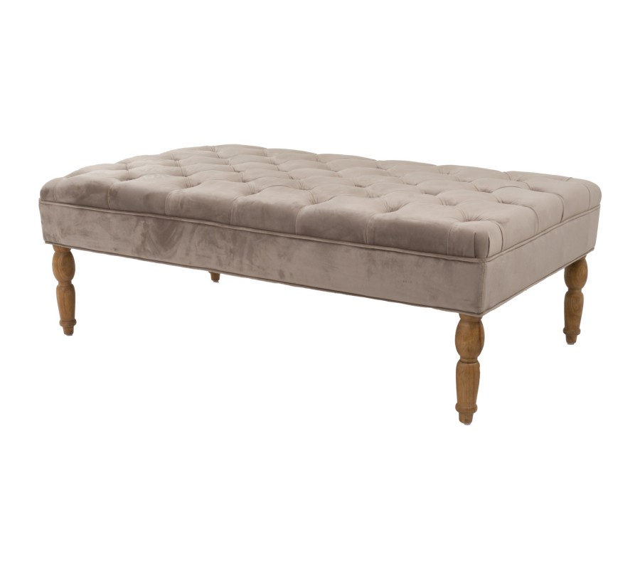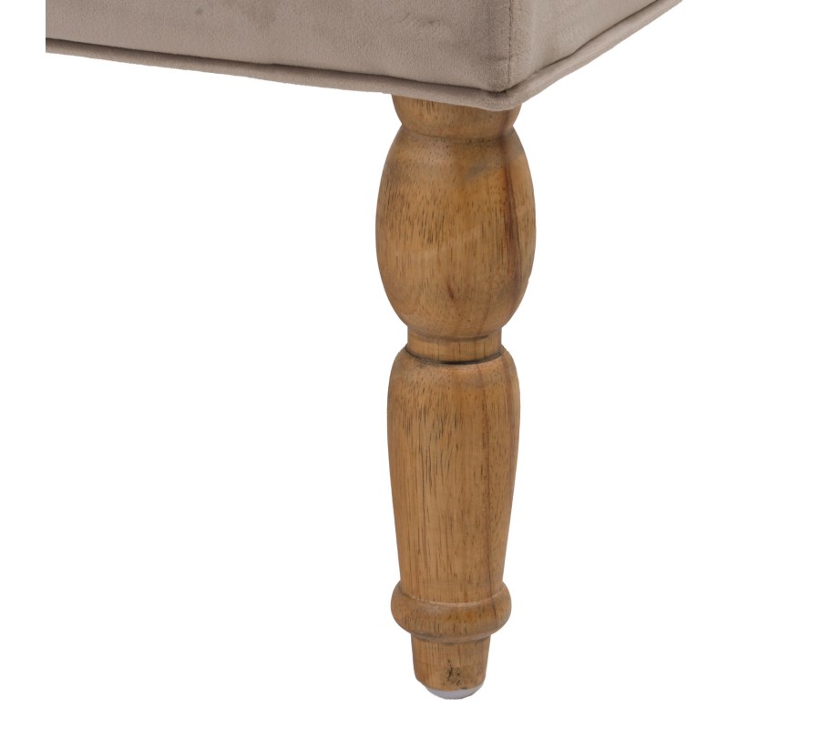 Luxusná čalúnená taburetka Chelsea do obývačky zo zamatu béžovej farby s vyrezávanými nožičkami 123cm