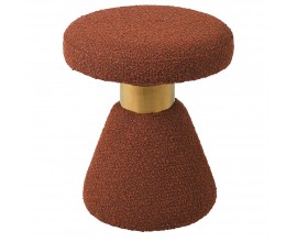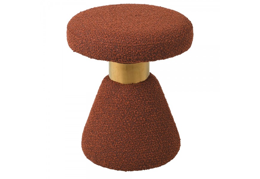 Dizajnová buklé taburetka Mey v hrdzavo hnedeom štýlovom čalúnení s kovovým stredom zlatej farby 48cm