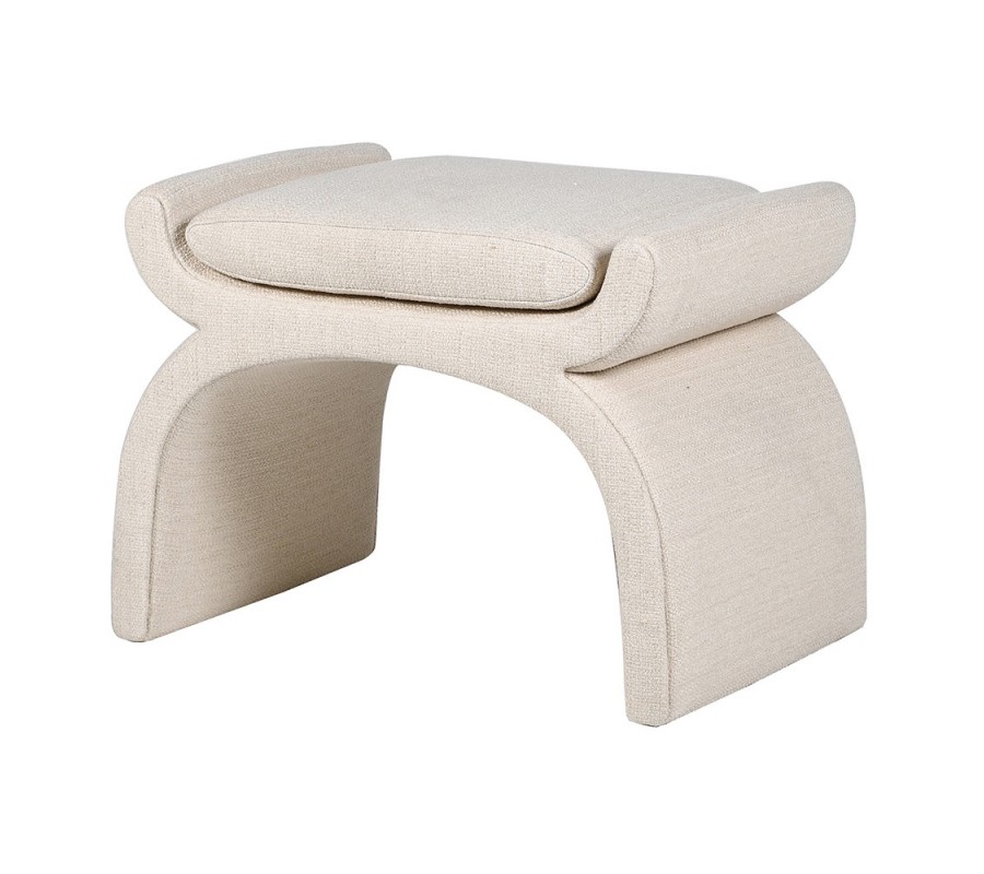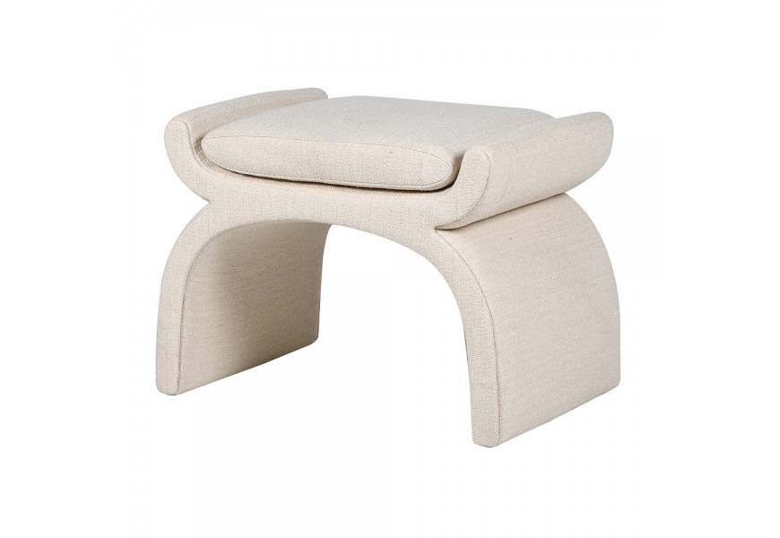 Luxusná taburetka Chantelle v krémovo bielom buklé čalúnení s tvarovanou sedacou časťou s podstavou v tvare polkruhu 63cm