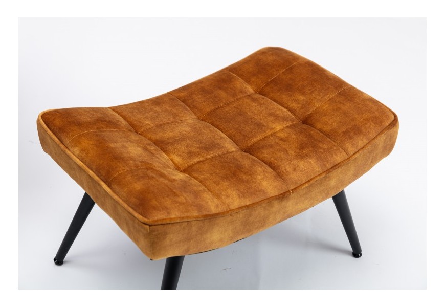 Škandinávska moderná taburetka Scandinavia s horčicovým prešívaným poťahom a čiernymi kovovými nohami 54cm
