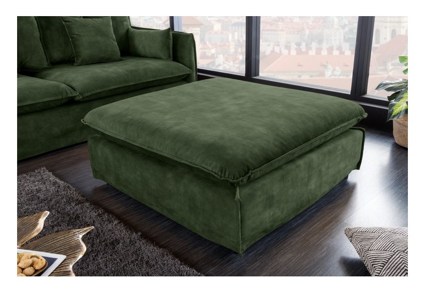 Elegantný taburet Heaven je skvelým doplnkom k rovnomennej luxusnej sedačke do moderne ladených obývačiek. Taburet štvorcového tvaru získava luxusný vzhľad vďaka zamatovému lesklému poťahu v tmavozelenej farbe. Vašim priestorom dodá elegantný nádych a pomôže v nich vytvoriť príjemnú a útulnú atmosféru. Mäkké čalúnenie sa postará o váš dokonalý komfort, či už taburetku využijete samostatne alebo v spojení so sedačkou. Kombináciou s tmavým dreveným nábytkom vytvoríte luxusný moderný nádych!
