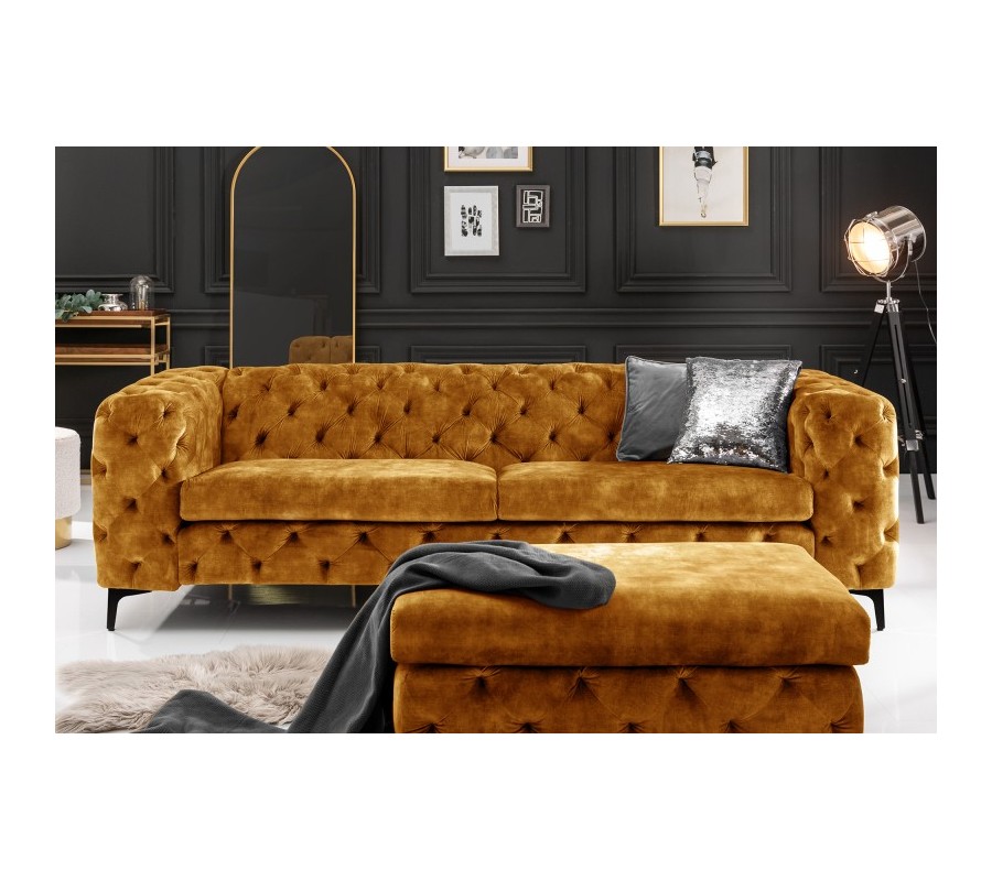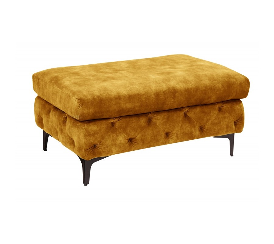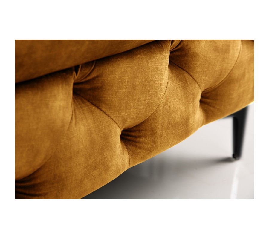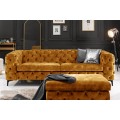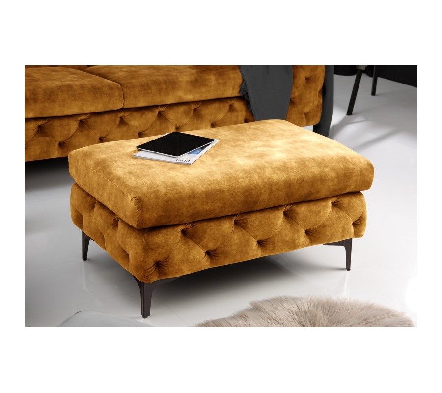 Moderná zamatová taburetka Modern Barock v horčicovej farbe s chesterfield prešívaním 92cm