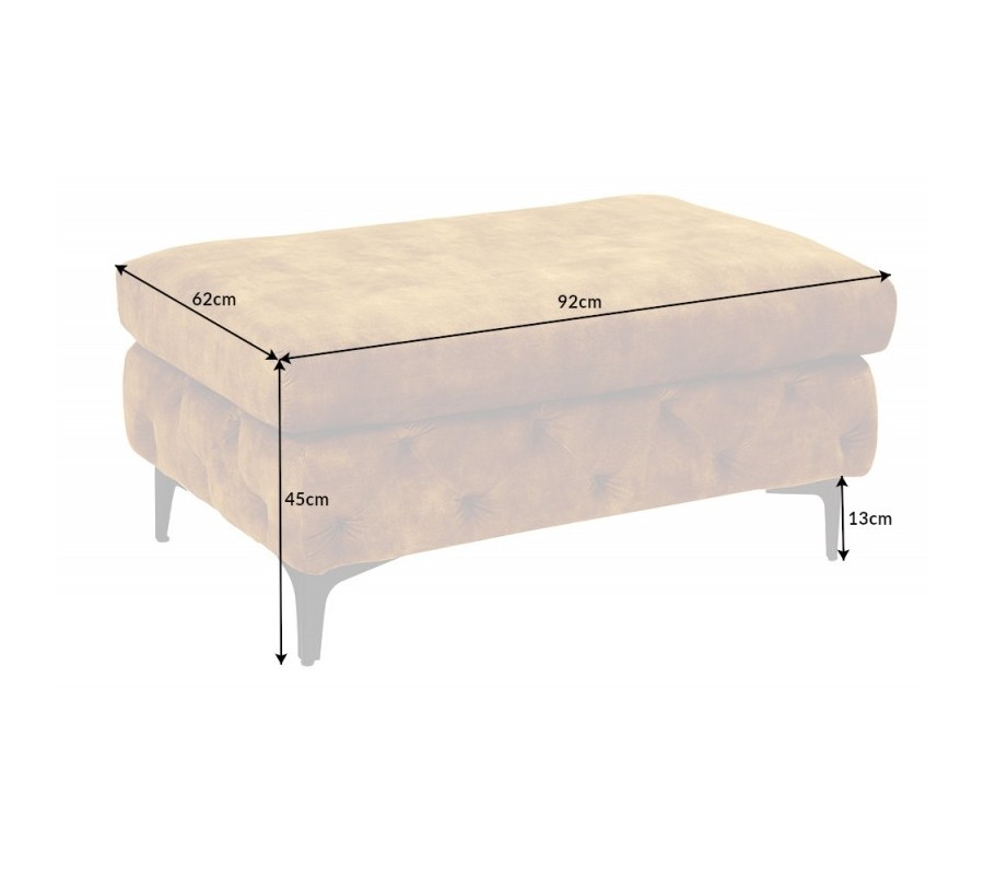 Jedinečná taburetka Modern Barock predstavuje dizajnový kúsok prepájajúci prvky barokového štýlu s moderným prevedením. Poťah zo zamatu sa postará o pohodlie a komfort, je príjemný na dotyk a efektne doplní moderné, art deco i klasickejšie ladené priestory. Najvýraznejším prvkom taburetky je však jej horčicovožltá farba, ktorá váš interiér rozžiari a dodá mu moderný nádych. Klasický obdĺžnikový tvar disponuje jemne zaoblenými rohmi v duchu štýlu chesterfield, ktorý umocňuje aj typické prešívanie po bokoch taburetky. Malé čierne nožičky z kovu dotvárajú nadčasový vzhľad a plnia tiež praktický účel uľahčenia manipulácie a prístupu. Taburetka Modern Barock vytvorí skvelú kombináciu s rovnomennou sedačkou žltej farby. Vhodné sú tiež výrazné kovové doplnky, nábytok zo skla či z masívneho dreva v tmavých odtieňoch a dizajnové doplnky v podobe unikátneho svietidla alebo koberčeka s vysokým vlasom.