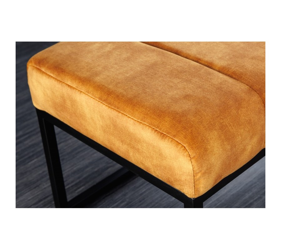 Dizajnová taburetka Taxil s horčicovo žltým zamatovým čalúnením a čiernymi kovovými nožičkami 108cm
