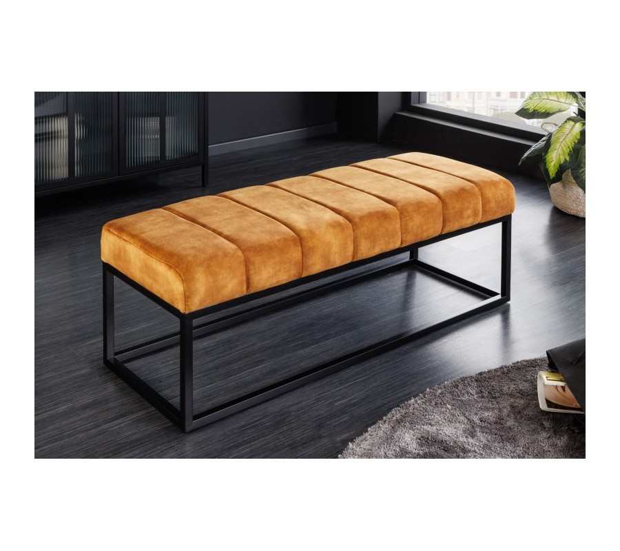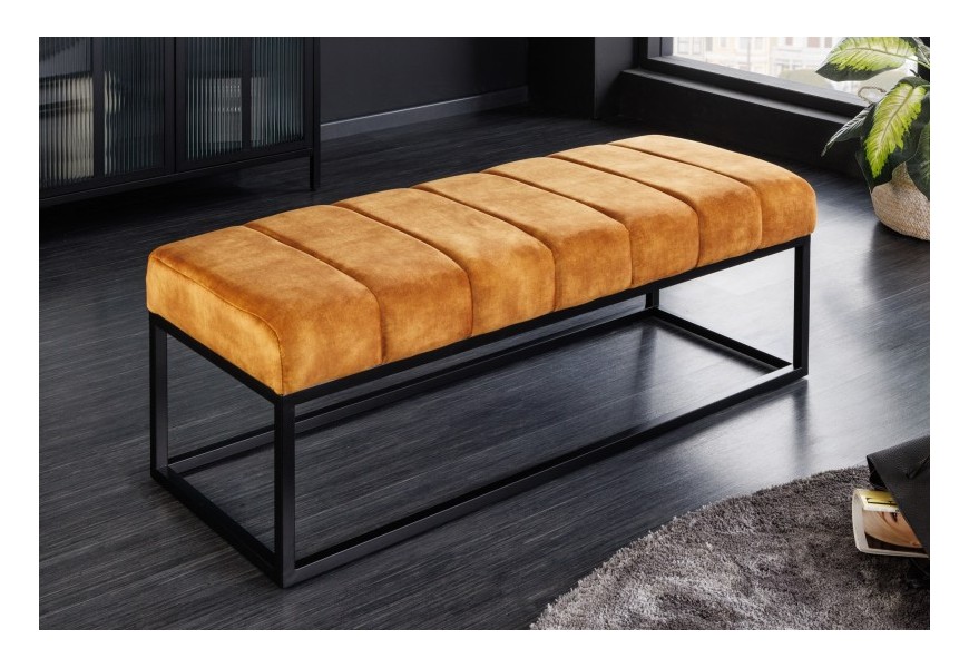 Štýlová taburetka Petia v modernom vyhotovení Vám prináša jedinečný výrazný vzhľad, ktorý rozžiari každý industriálny interiér. Dizajnová taburetka Petia disponuje príjemným, horčicovo žltým čalúnením zo zamatu, ktoré je obohatené o štýlové prešívanie v priamych líniách. Žiarivý dizajn čalúnenia je doplnený čiernou podstavou so štyrmi spojenými nožičkami, ktoré sa nesú v kovovom prevedení s práškovým náterom, čo vytvorí industriálny vzhľad. Spomenuté industriálne prevedenie taburetky Petia vytvorí nádhernú nadčasovú kombináciu s čiernym kovovým nábytkom, kde odporúčame kombinovanie so sedačkami a kreslami v podobnej horčicovo žltej farbe, čo krásne osvieži tmavý vzhľad industriálnych interiérov.