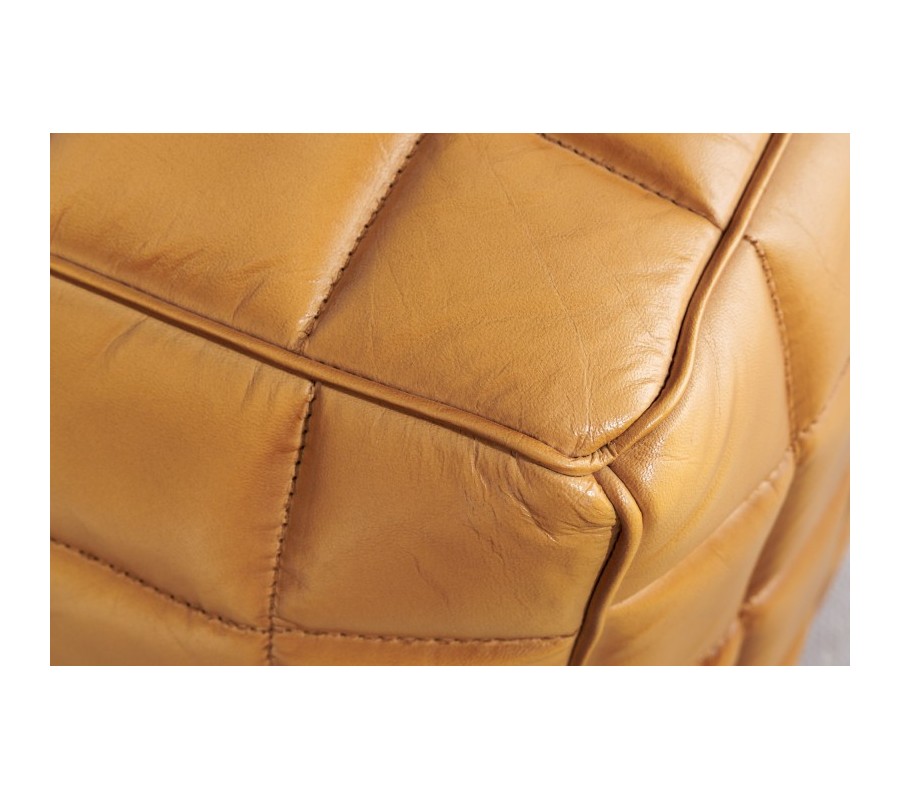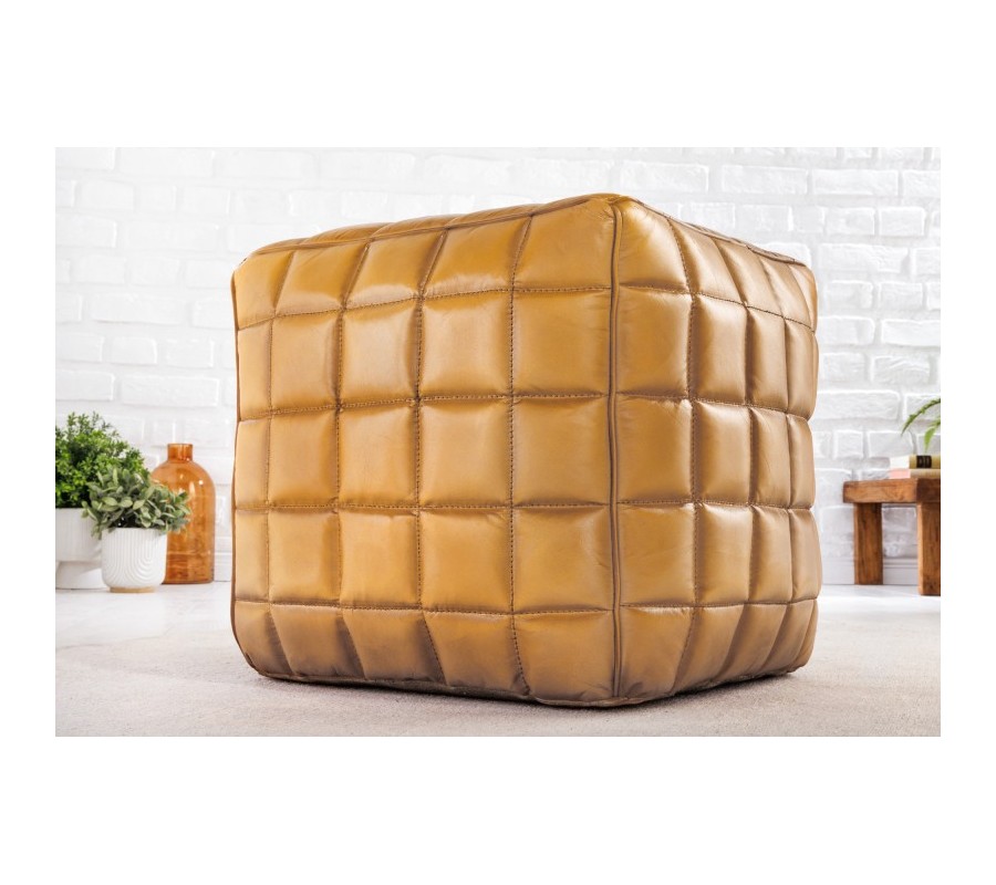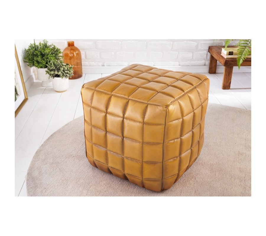 Štýlová taburetka Sibei je dizajnovým pomocníkom vhodným na doplnenie moderne ladených obývačiek. Jej jednoduchý štvorcový tvar je doplnený elegantným prešívaním, čo vytvára dizajnový vzhľad. Taburetka disponuje poťahom z pravej kože, ktorý sa nesie v koňakovej hnedej farbe. Materiálová a farebná kombinácia tak vytvára unikátny a nadčasový doplnok, ktorý poľahky doplníte do monochromaticky i pestrejšie ladených interiérov. Taburetka Sibei vďaka univerzálnemu dizajnu a príjemnému povrchu skvelo poslúži aj na doplnenie dizajnových priestorov kaviarní alebo čajovní.