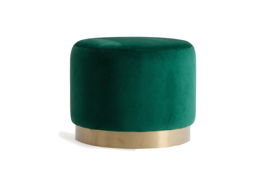 Dizajnová okrúhla taburetka Saanvi sa nesie v art deco štýle, ktorý sa vyznačuje elegantným a nadčasovým vzhľadom. Jednoduchý geometrický tvar taburetky je doplnený o príjemné zamatové čalúnenie vo výraznej smaragdovozelenej farbe. Vďaka tomu dostáva nielen exkluzívny estetický vzhľad, ale je taktiež príjemná na dotyk. Kontrastne k čalúneniu pôsobí podstava z materiálu MDF s jemným zlatým nádychom, čo dotvára art deco vzhľad. Taburetka skvelo poslúži na usadenie či vyloženie nôh po náročnom dni, a vy si tak môžete dopriať dokonalý relax. Umiestnením do spálne, obývačky či kancelárie si miestnosť doplníte o jedinečný, etsetický i praktický kúsok, ktorý dopomôže vytvoriť útulnú atmosféru. Pre umocnenie efektu art deco štýlu odporúčame taburetku Saanvi kombinovať s nábytkom z kovu či skla a so zlatými akcentami.