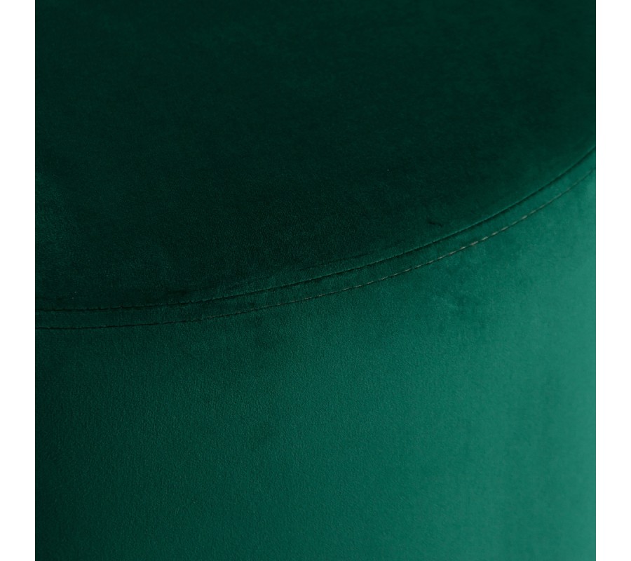 Art deco dizajnová okrúhla taburetka Saanvi so smaragdovozeleným zamatovým poťahom a drevenou podstavou 51cm