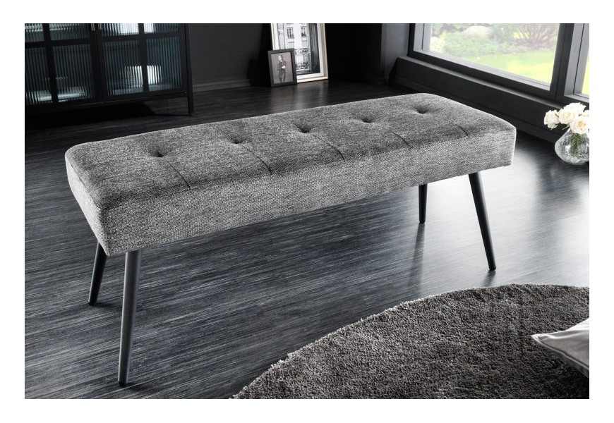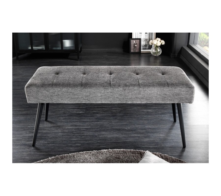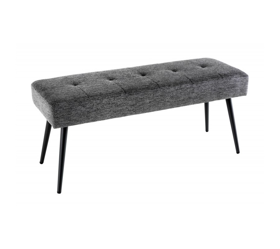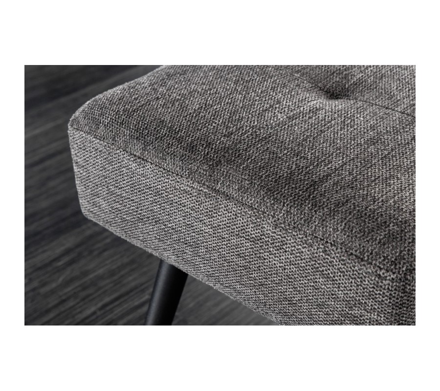 Táto moderná lavica Vás zaujme svojím čalúnením z textúrovanej tkanivy v tmavosivej farbe, ktoré je obohatené o dizajnové prešívanie. Stabilitu lavice Soreli zaručia štyri kovové nožičky s práškovým nástrekom, vďaka ktorým Vášmu interiéru dodajú industriálny nádych.