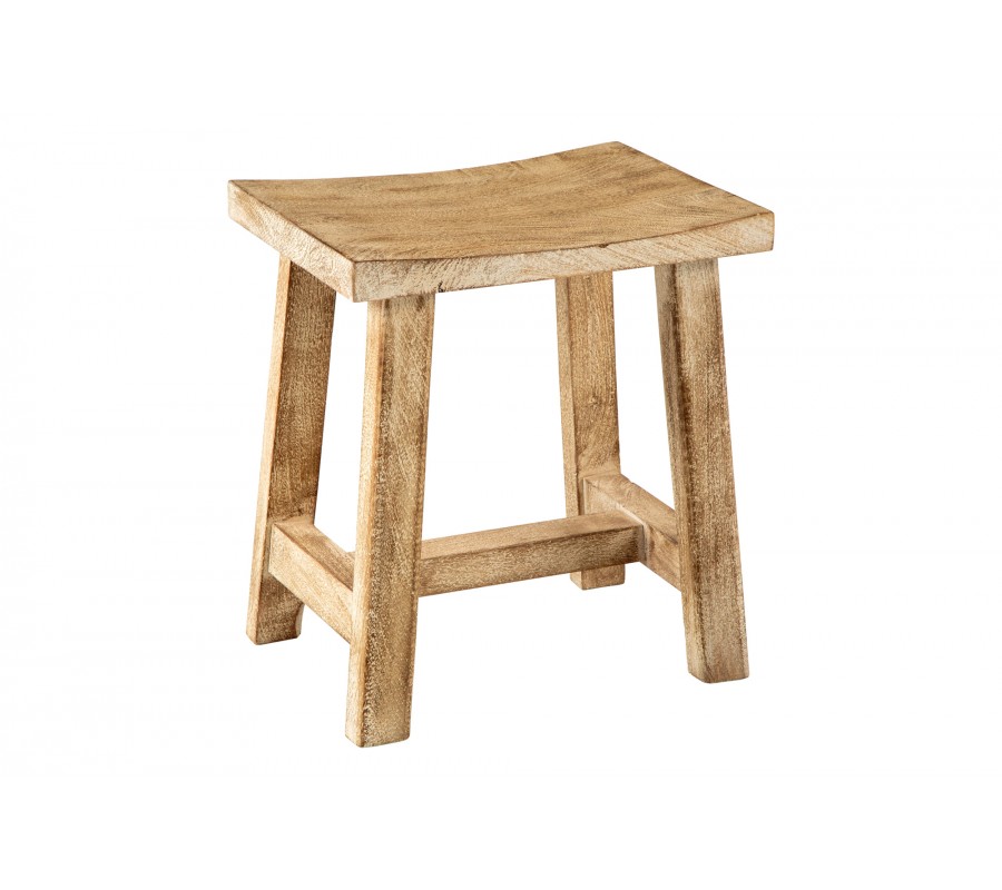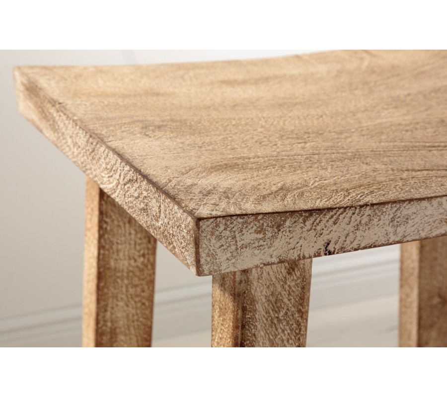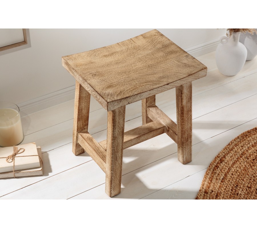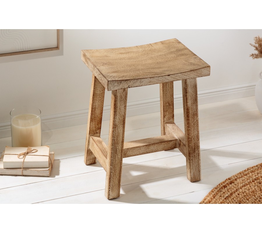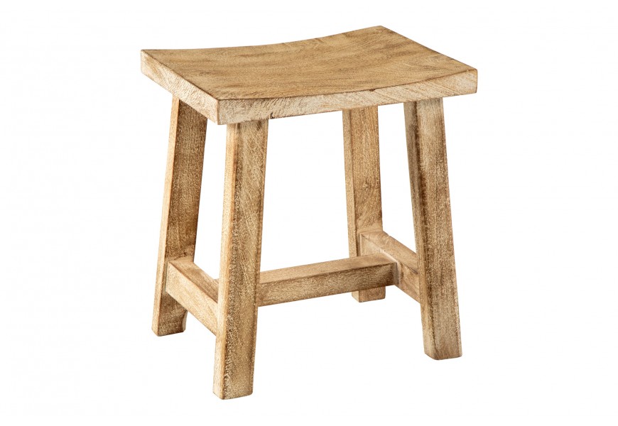 Vidiecky masívny taburet Roseville zo svetlého mangového dreva so zaoblenou vrchnou doskou 45 cm