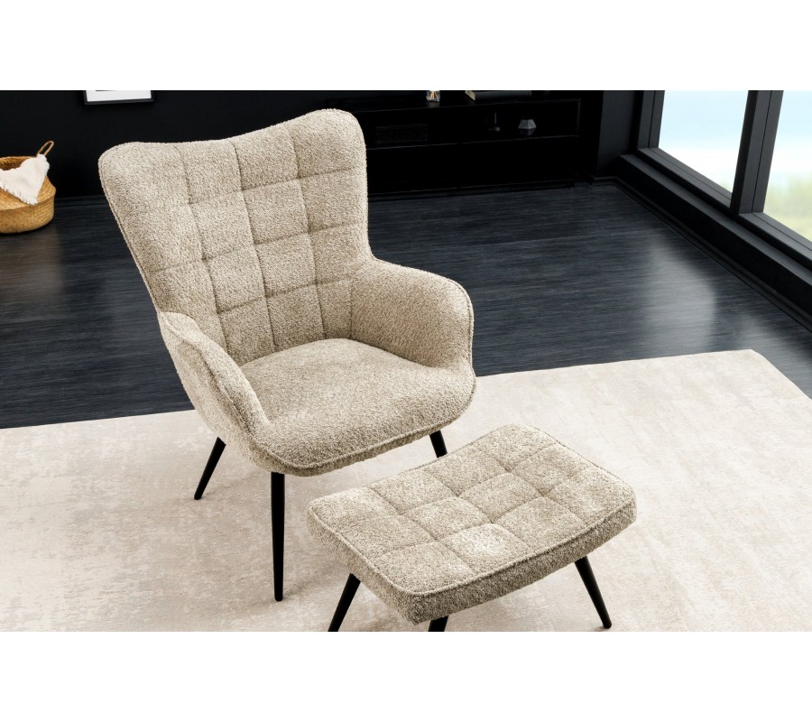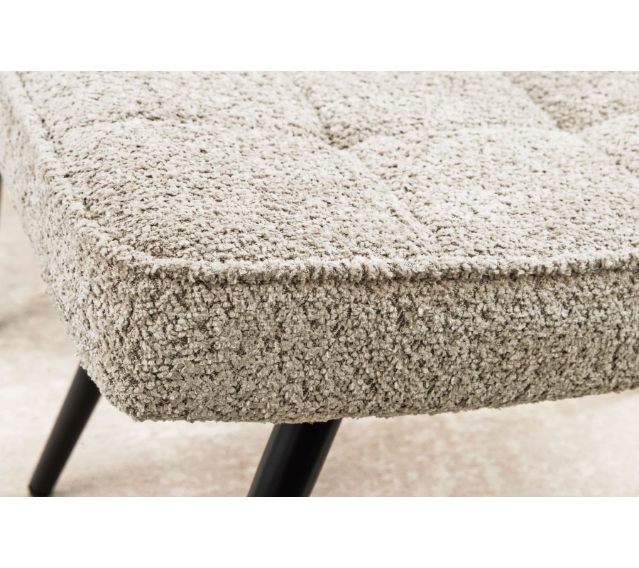 Moderná taburetka Scandinavia sa pýši čoraz obľúbenejším čalúnením v štýle buklé, ktoré sa nesie v offwhite bielej až sivej farbe. Zaoblený sedák taburetky je taktiež obohatený aj o dizajnové štvorcové prešívanie, ktoré pozdvihne celkovú estetiku taburetky.