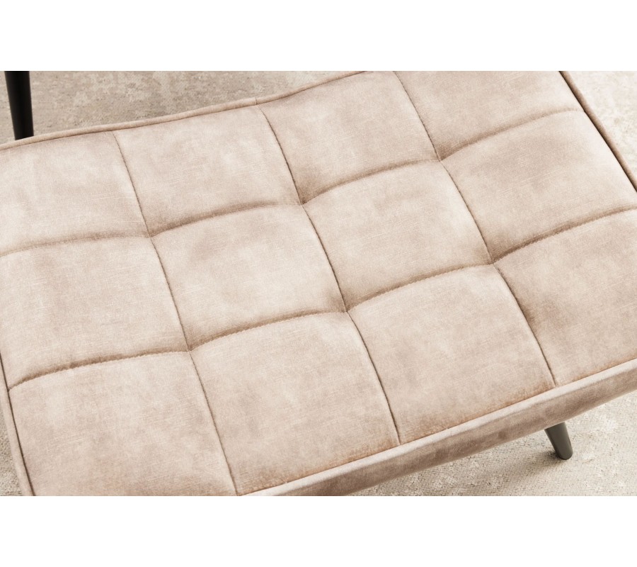 Jemné zamatové čalúnenie v šampanskej farbe dodáva tejto taburetke nežný, no zároveň výrazný charakter. Štvorcové prešívanie na zaoblenom sedáku nielenže obohacuje dizajnové prevedenie, ale zároveň poskytuje extra komfort pri sedení.