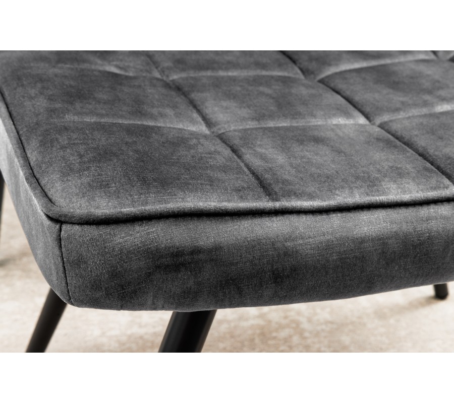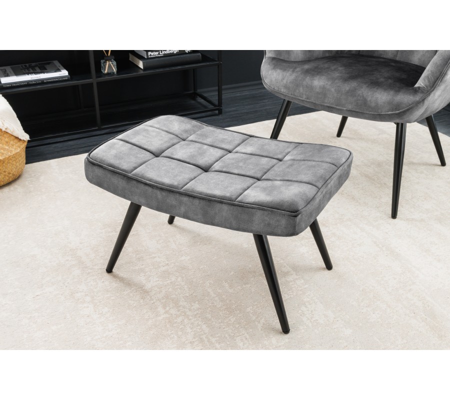 Čalúnená taburetka Scandinavia bude praktickým a multifunkčným nábytkom vo vašej obývačke. Jej obdĺžniková vrchná časť je mierne prehnutá, čo v kombinácii s mäkkým penovým čalúnením znásobuje váš komfort pri sedení či vyložení si nôh. Dobrú stabilitu nábytku zaručujú pevné kovové nožičky v čiernej farbe s práškovým nástrekom, ktorý im dodáva matný vzhľad. Poťah je sivý v zamatovom prevedení, ktoré dodáva taburetke lesk a luxusný vzhľad. Dizajnovo ju oživuje lineárne štvorcové prešívanie na vrchnej časti, ktoré prináša do kompozície zaujímavý vizuálny prvok. Materiál vyrobený z mikrovlákna je veľmi odolný a nenáročný na údržbu. Taburetku môžete využiť v menších obývačkách ako príležitostné miesto na sedenie. V kombinácii s kreslom poslúži ako podnožka. Môžete zvoliť kreslo Scandinavia s rovnakým čalúnením z našej ponuky, ale univerzálna sivá farba umožňuje taburetku doplniť aj k výraznejšiemu farebnému nábytku. Je tiež skvelou voľbou do obývačky zariadenej v industriálnom štýle, kde sa prepojí pomocou nožičiek s kovovými prvkami v priestore.