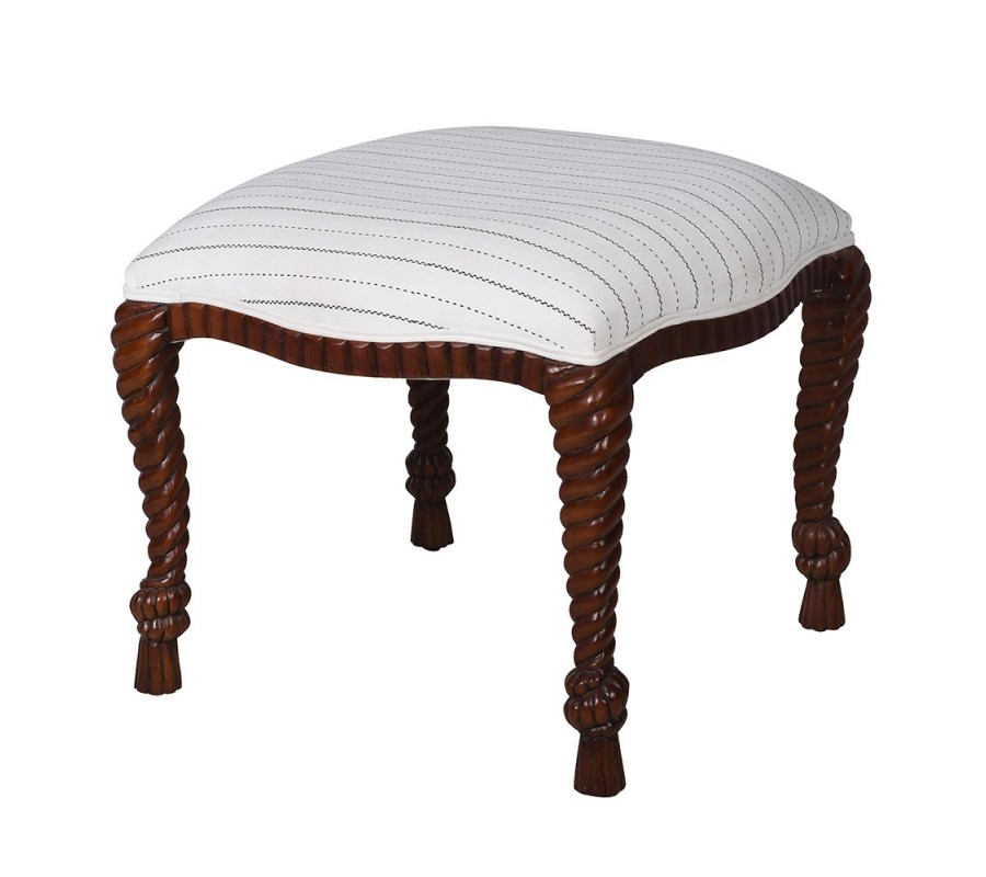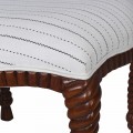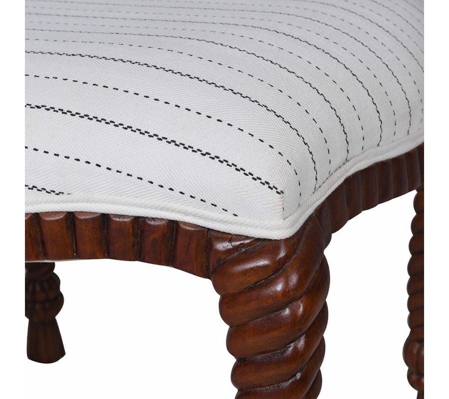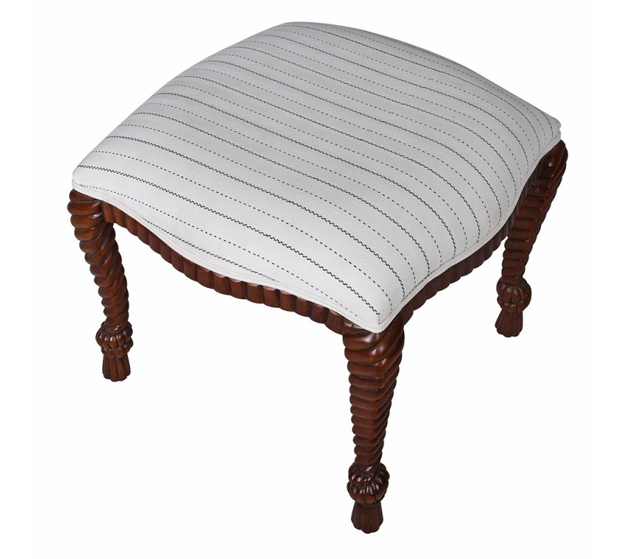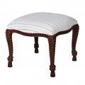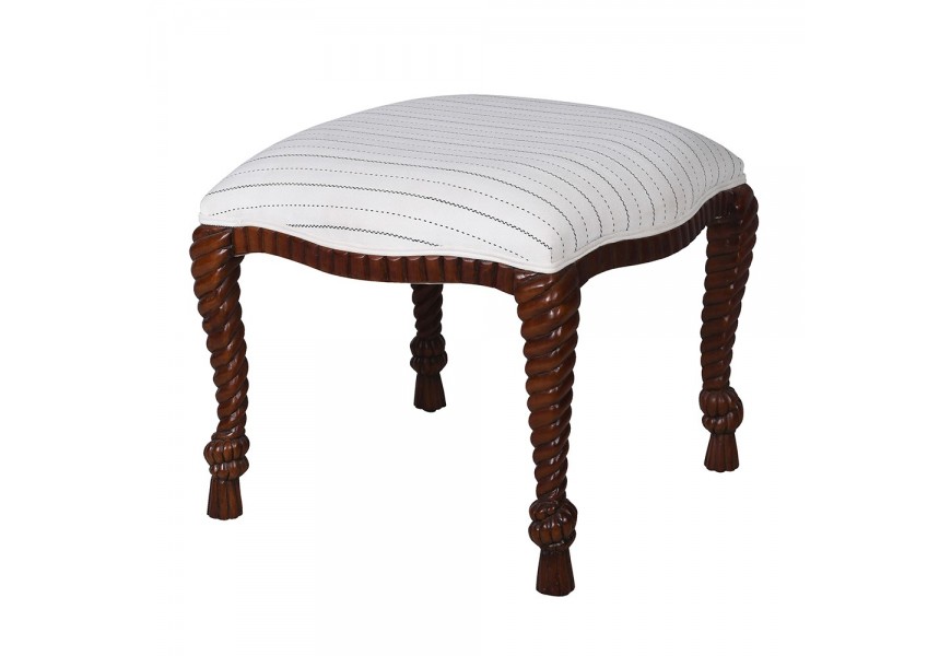 Dizajnová koloniálna čalúnená taburetka Twist s bielym pruhovaným poťahom a s vyrezávanými nožičkami 55 cm