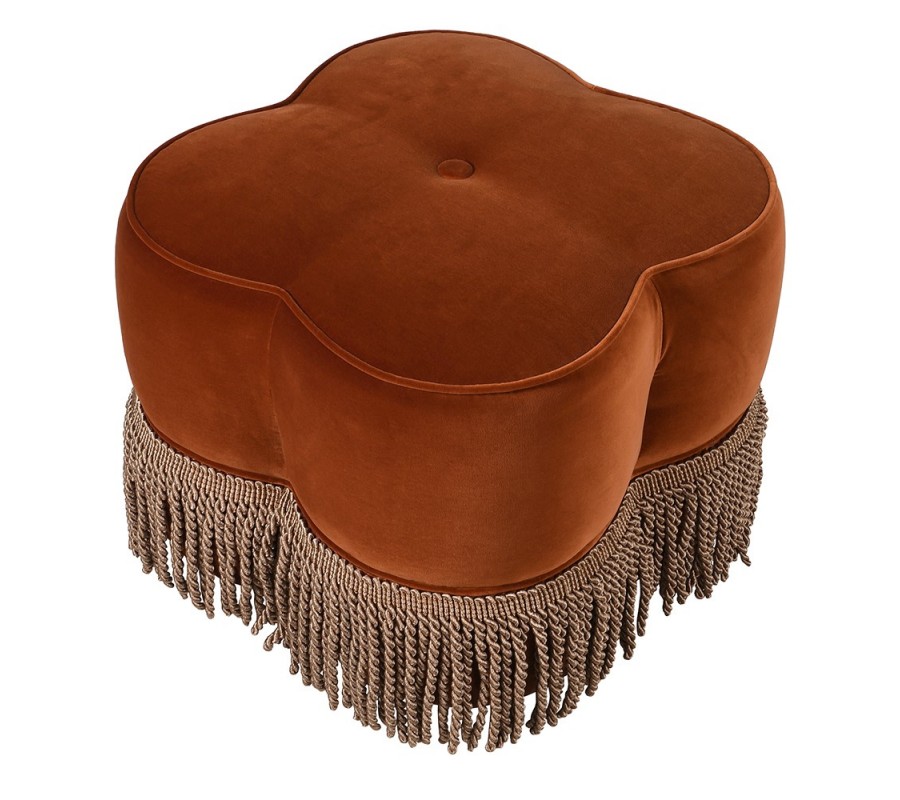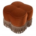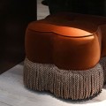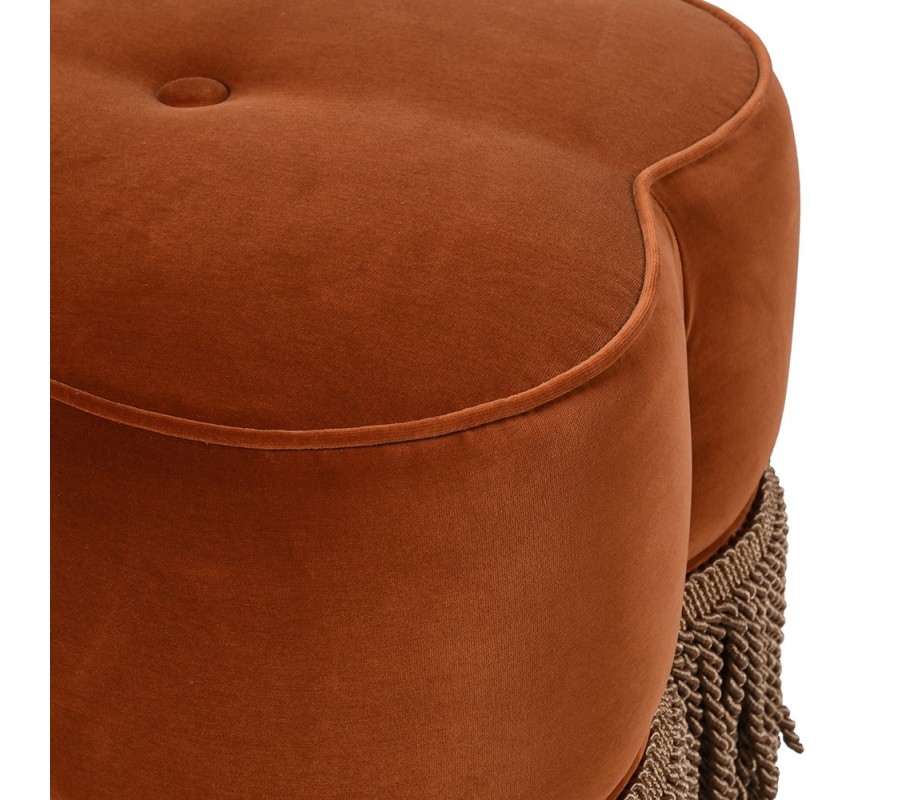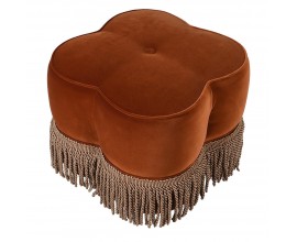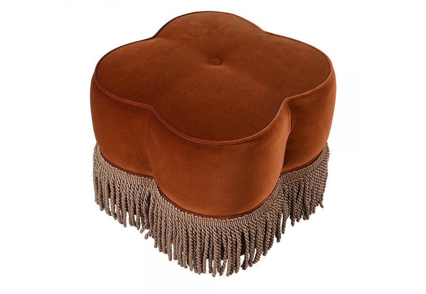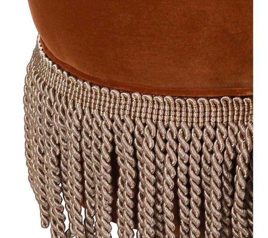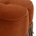 Štýlová glamour zamatová taburetka Peggy v tehlovej farbe so strapcami v hnedo zlatej farbe s vintage nádychom 55 cm