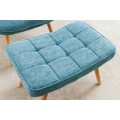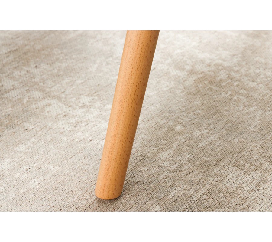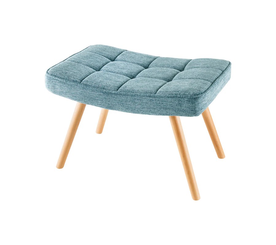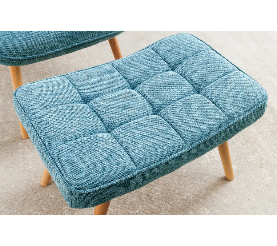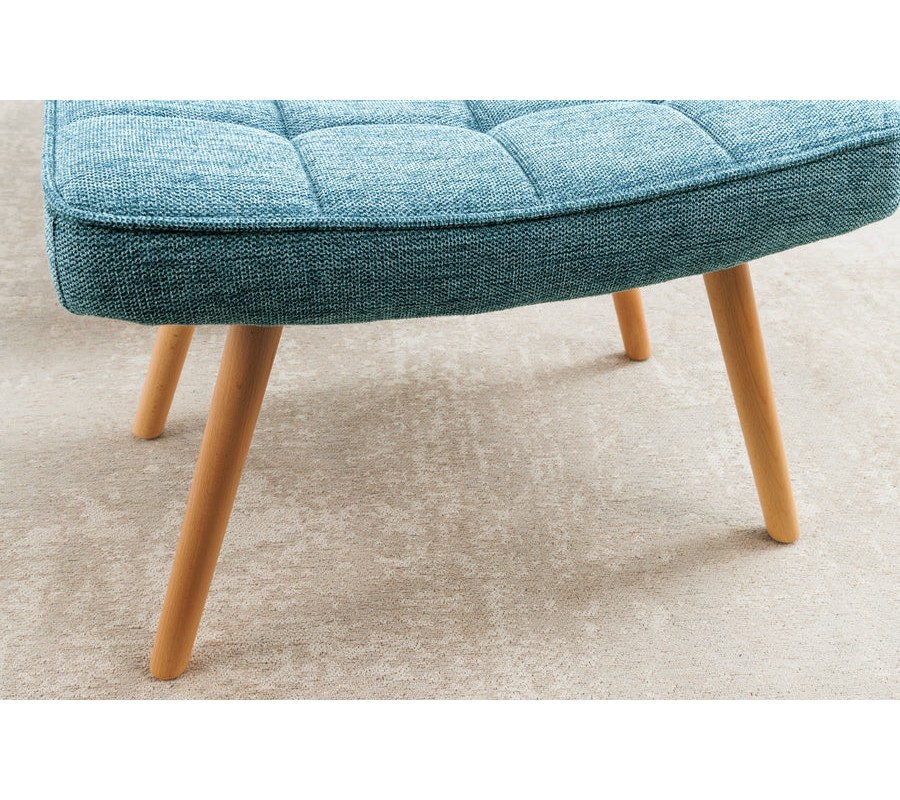 Nožičky podnožky sú vyrobené z dreva v svetlom prírodnom odtieni, ktorý kontrastuje s čalúnením a dodáva celkovému dizajnu severský charakter. Šikmé umiestnenie nôh zvyšuje stabilitu a zároveň pripomína štýl retro nábytku.