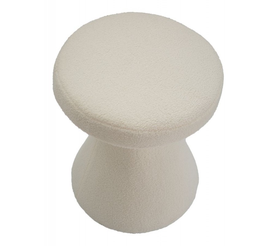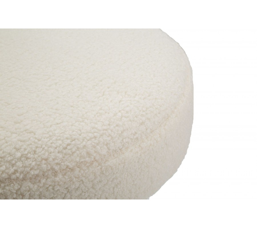 Okrúhla taburetka Vinia v art deco a glamour štýle je kombináciou sofistikovaného dizajnu a útulného komfortu. Jej poťah z krémového bouclé materiálu dodáva povrchu jemnú štruktúru a vizuálnu hrejivosť, čím skvelo zapadne do elegantných interiérov. Kónická základňa v kužeľovitom tvare poskytuje stabilitu a zároveň pridáva taburetke unikátny vizuálny charakter.