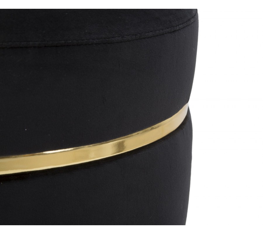 Dizajn je doplnený zlatým detailom, ktorý sa tiahne po obvode taburetky, čím podčiarkuje jej noblesný charakter a vytvára kontrast so zamatovým poťahom.