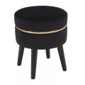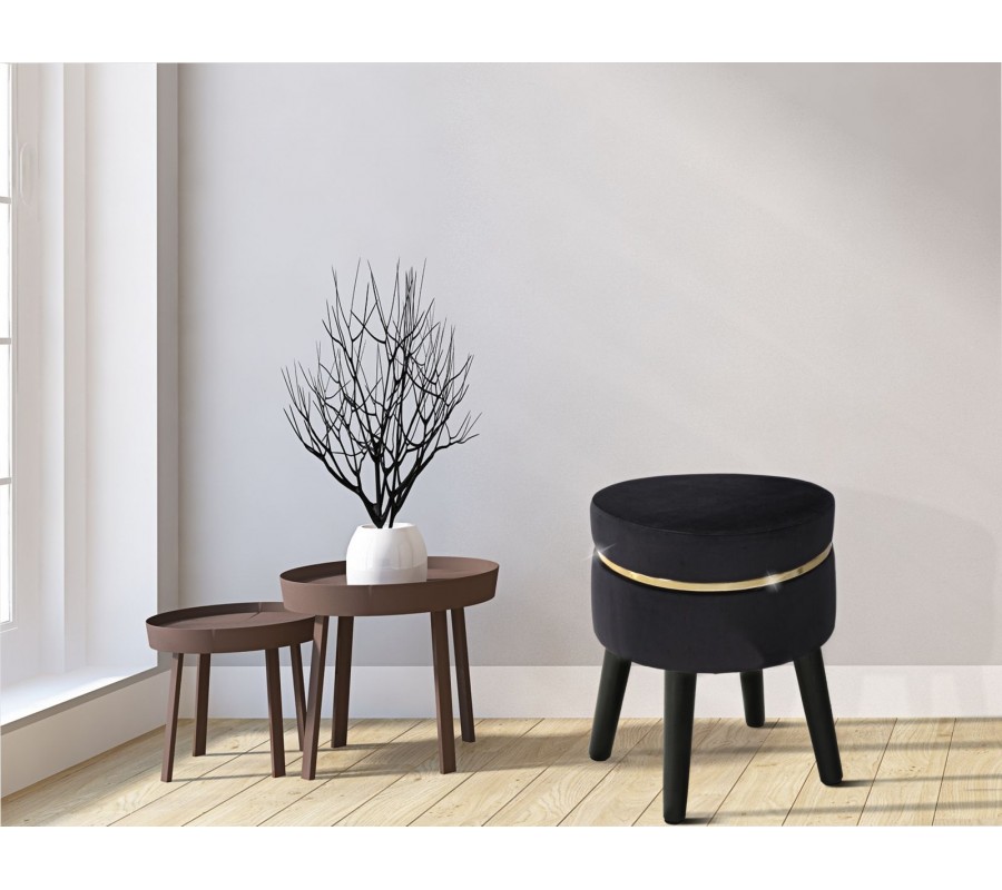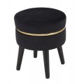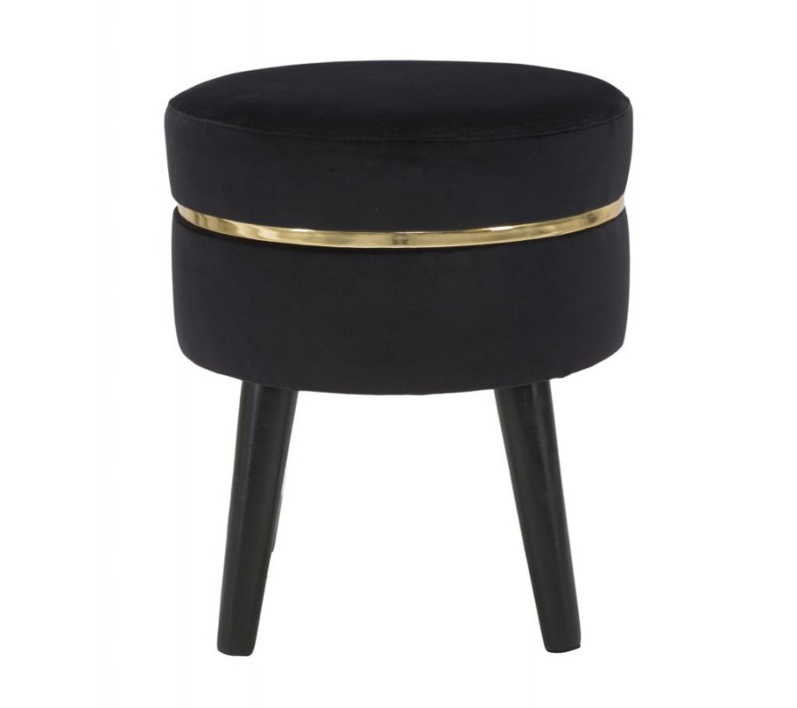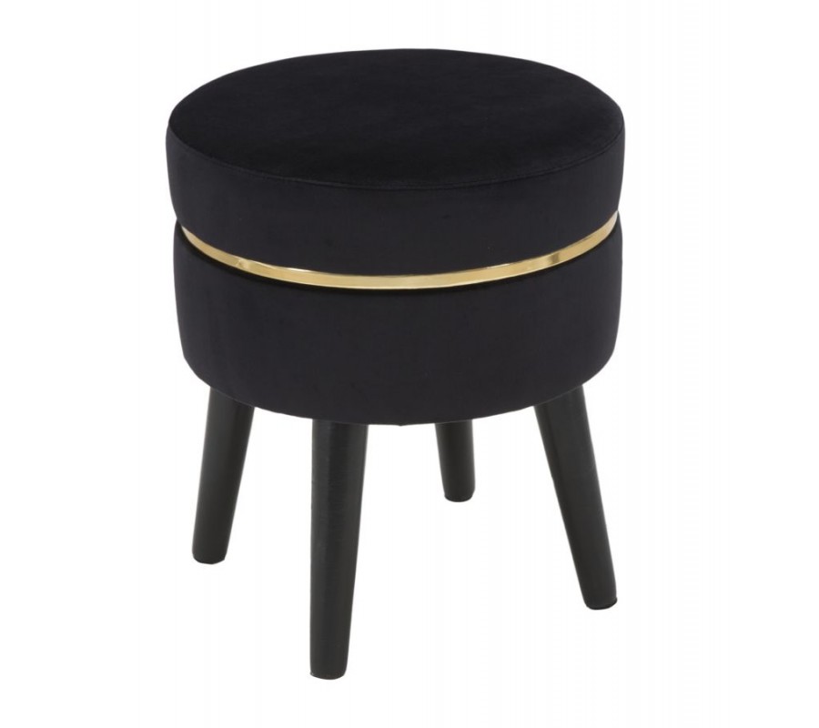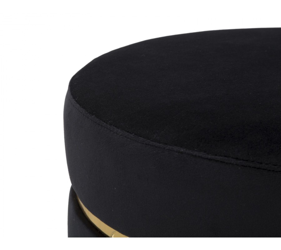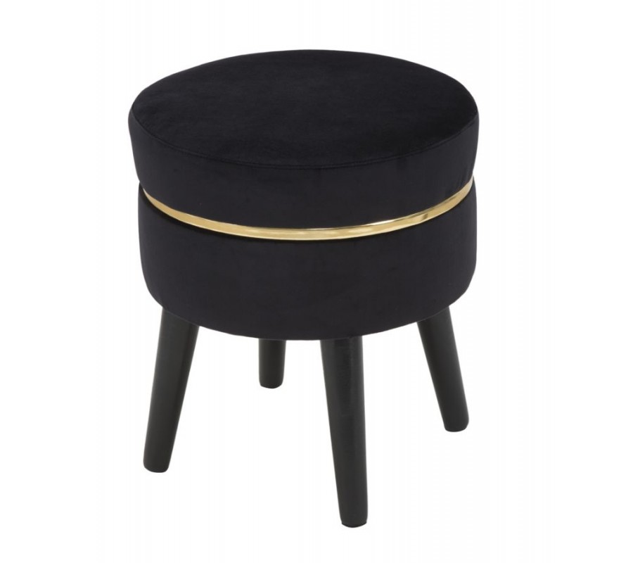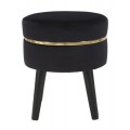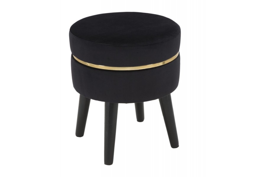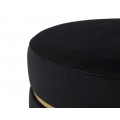 Art deco okrúhla čierna zamatová čalúnená taburetka Laurentia so zlatým detailom 40 cm