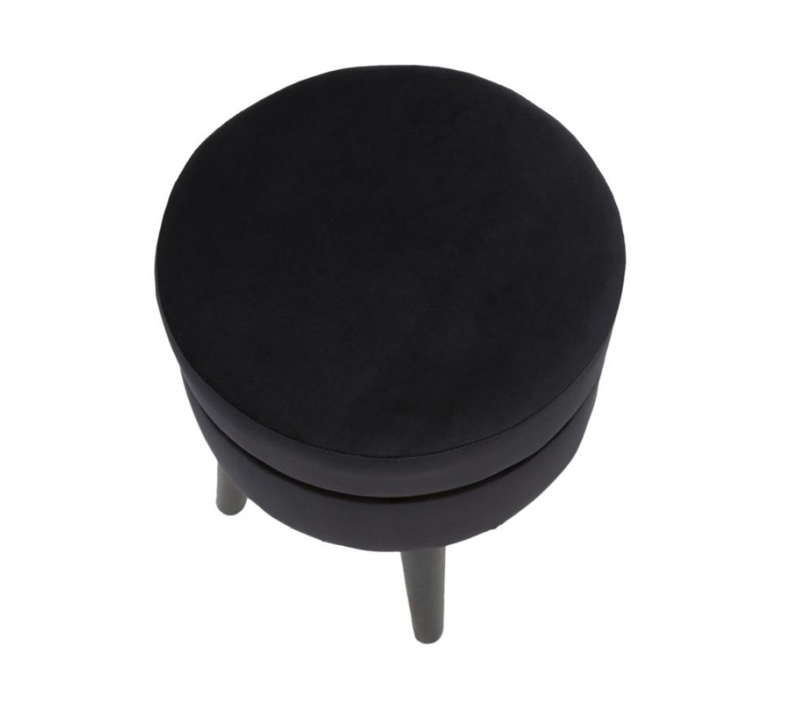 Okrúhla taburetka Laurentia v art deco a glamour štýle spája luxusný dizajn s praktickým využitím. Čalúnený povrch so zamatovým poťahom v čiernej farbe dodáva taburetke elegantný a sofistikovaný vzhľad.