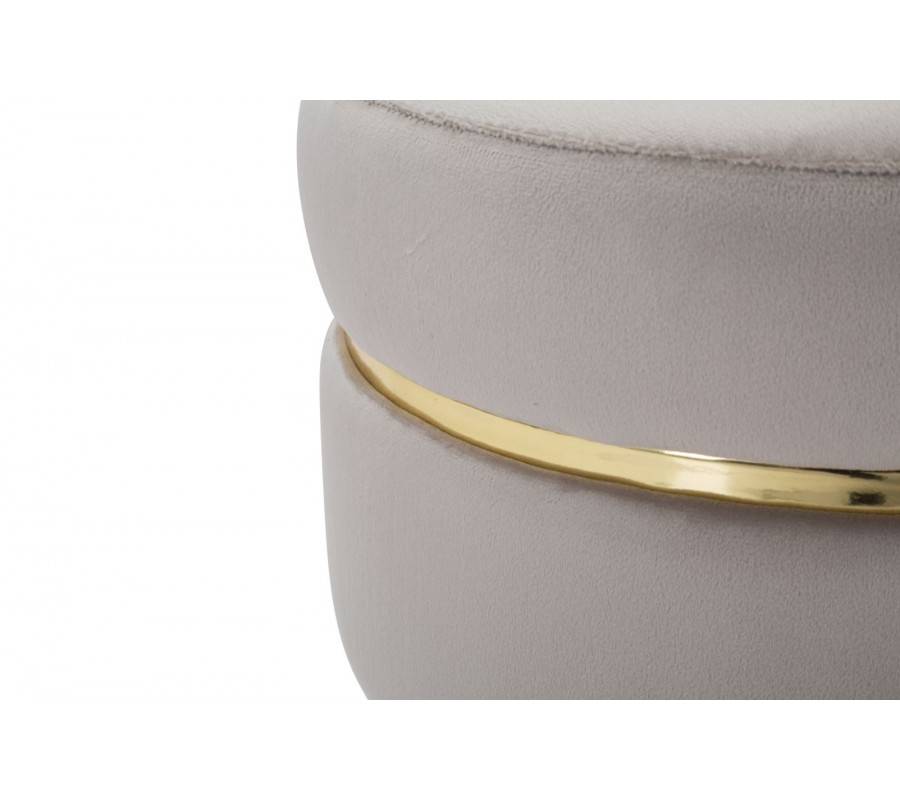 Okrúhla taburetka Laurentia v art deco a glamour štýle zaujme svojím zamatovým poťahom v svetlej sivej farbe, ktorý jej dodáva elegantný a sofistikovaný vzhľad.