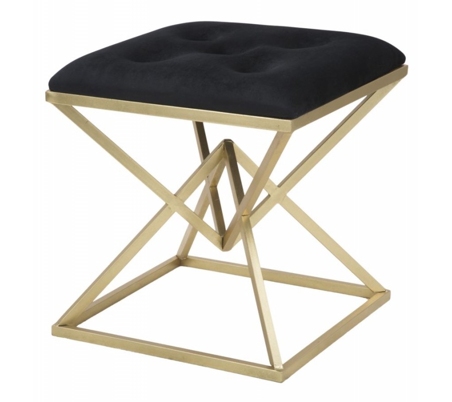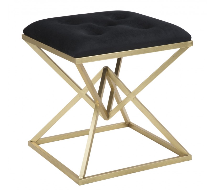 Taburetka Triangolo Oro prinesie svojím geometrickým dizajnom do priestoru nádych art deco štýlu. Kombinácia metalickej zlatej farby a čierneho zamatu pôsobí nadčasovým dojmom.