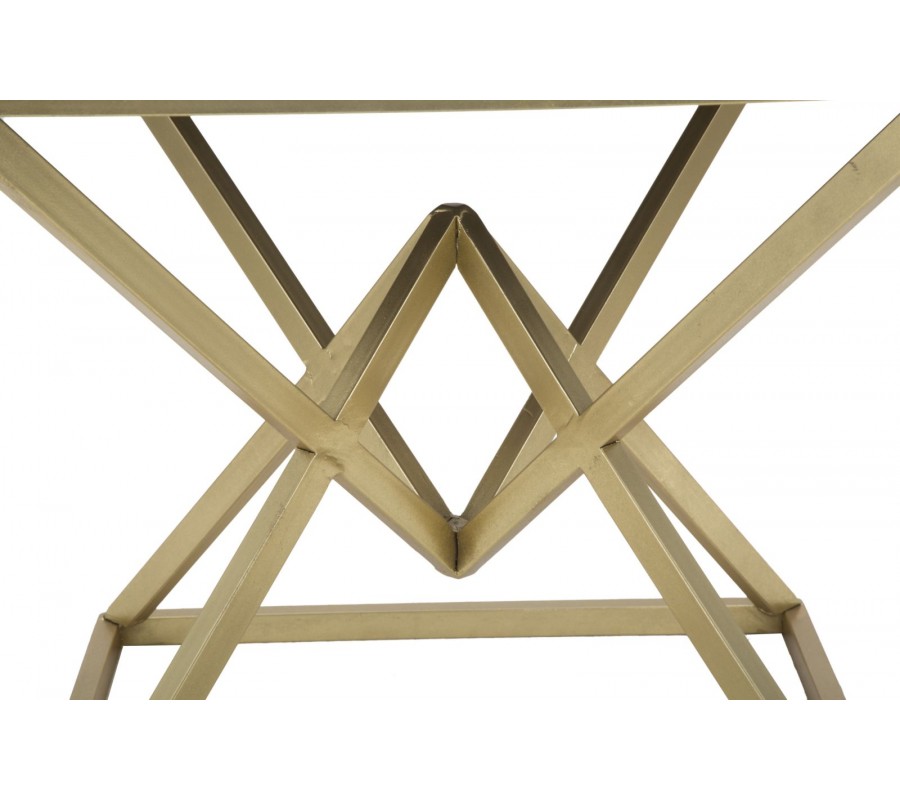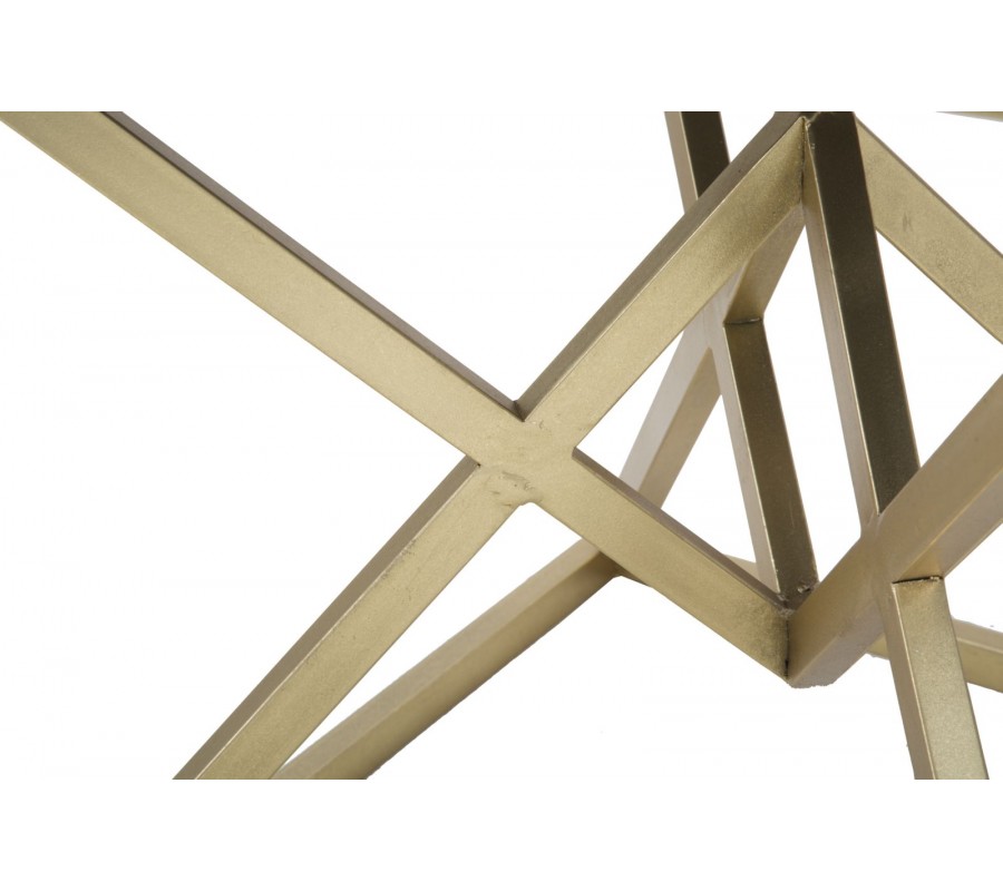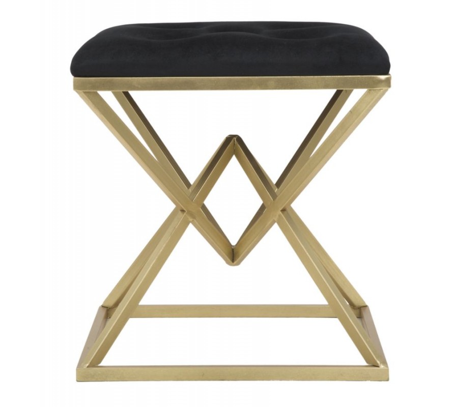 Podstava taburetky má výrazný art deco charakter. Je vyrobená z kovu v luxusnej zlatej farbe a jej geometrický dizajn vytvára siluetu pripomínajúcu presýpacie hodiny. Vo vrchnej a spodnej časti sú umiestnené štvorcové rámy, z ktorých rohov vychádzajú diagonálne línie, tvoriaci pyramídový tvar. Vrcholy pyramíd sa v strede križujú a vytvárajú pôsobivý dekoračný element.