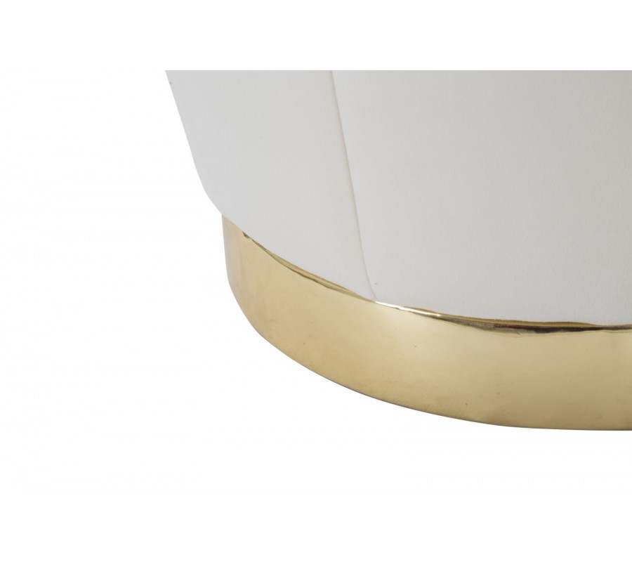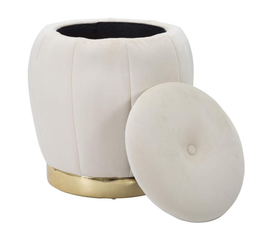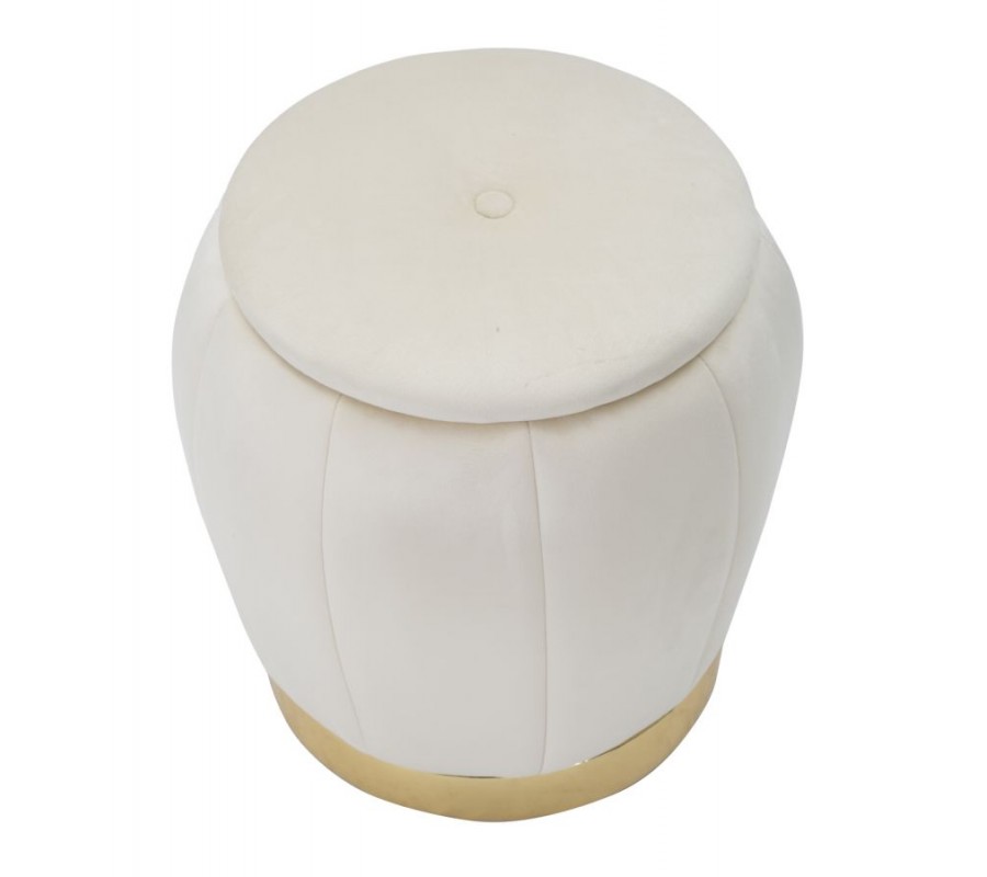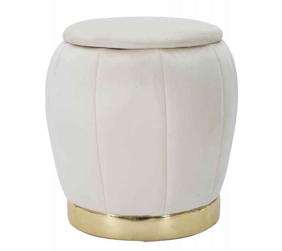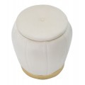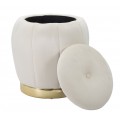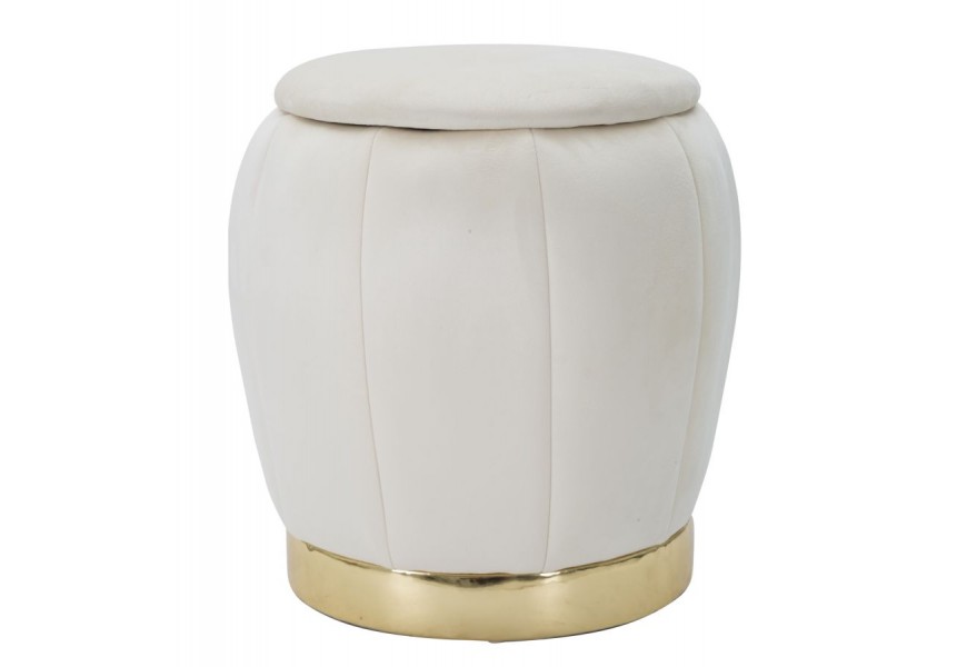 Dizajnová art deco taburetka Zucca s úložným priestorom s krémovým bielym zamatovým poťahom a zlatým akcentom 43 cm