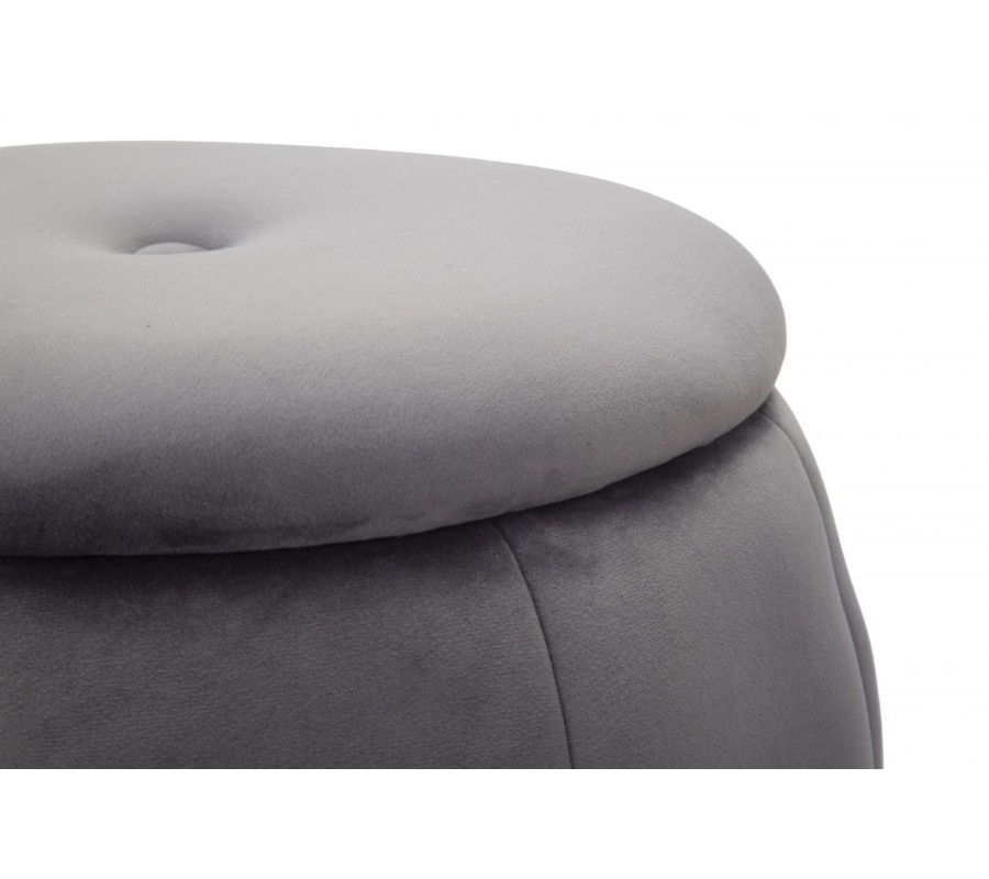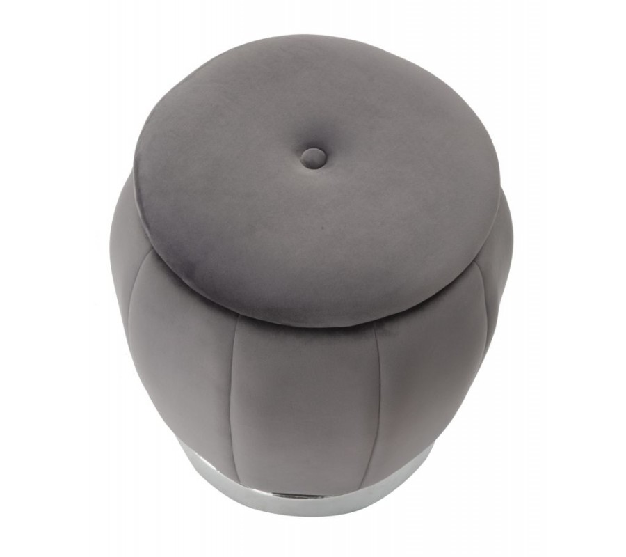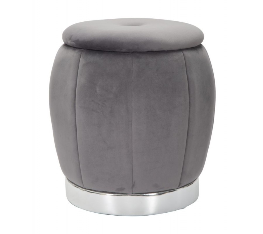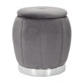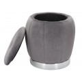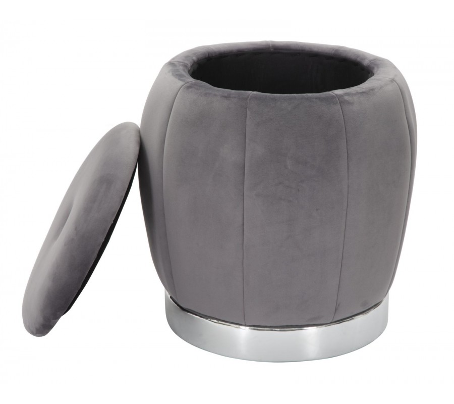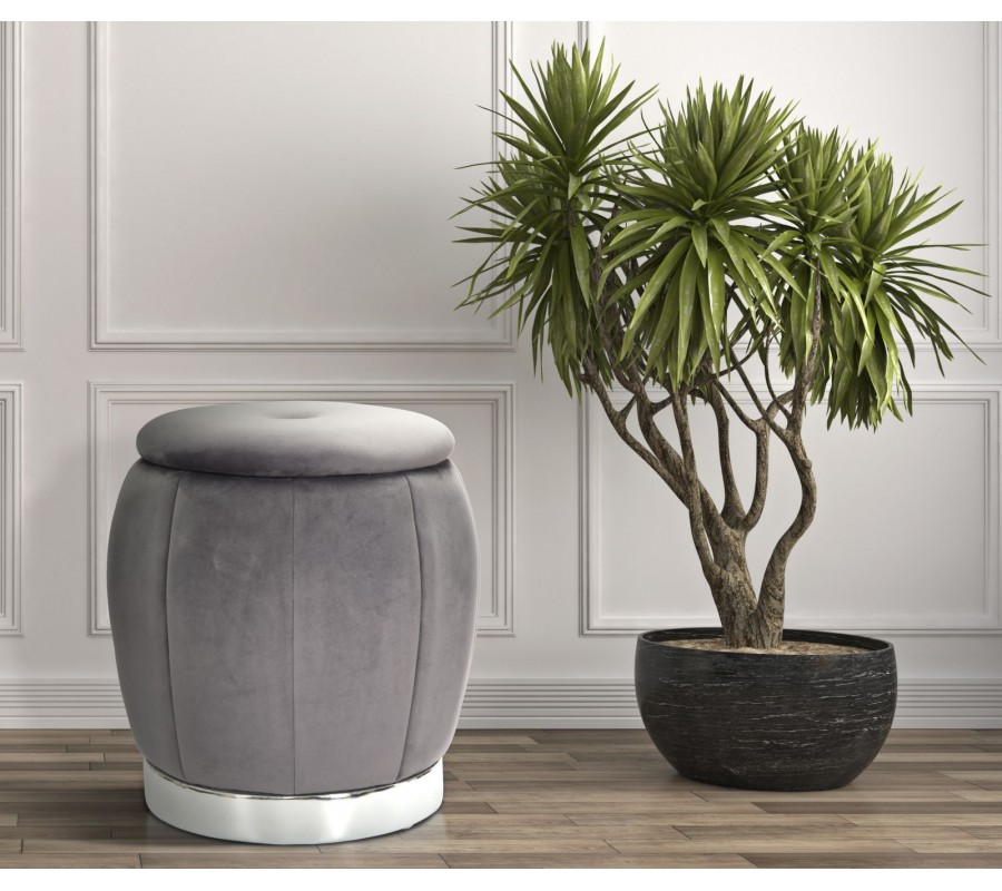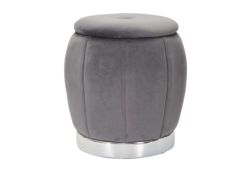 Dizajnová sivá art deco taburetka Zucca s úložným priestorom a zamatovým poťahom so striebornou podstavou 43 cm