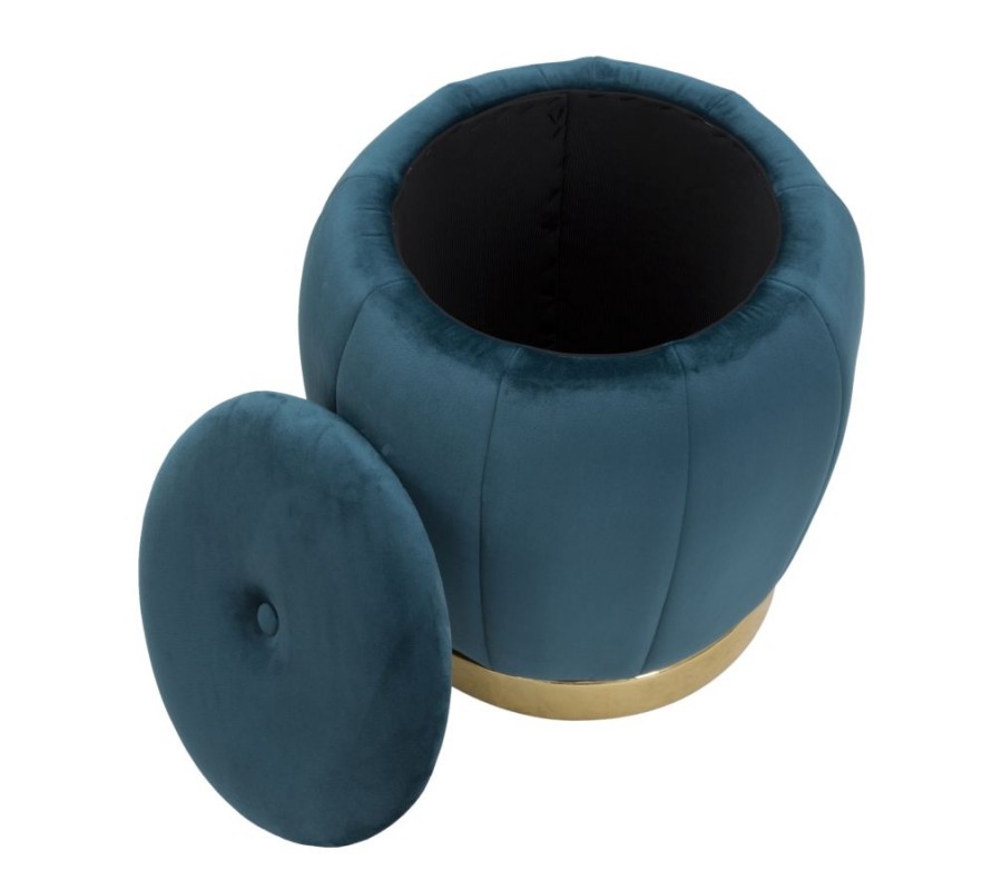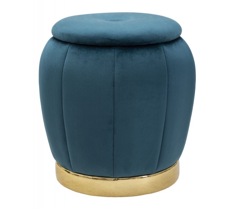 Taburetka Zucca vás očarí svojou nádhernou modrozelenou farbou so zlatým akcentom. Do vašej obývačky či spálne prinesie eleganciu art deco štýlu a oceníte aj praktický úložný priestor vo vnútri.