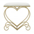 Dizajnová glamour taburetka Amorattia s krémovým zamatovým čalúnením a zlatou kovovou podstavou v tvare srdca 50 cm