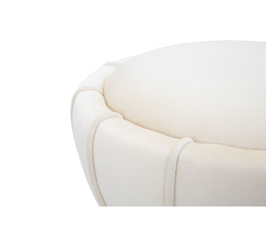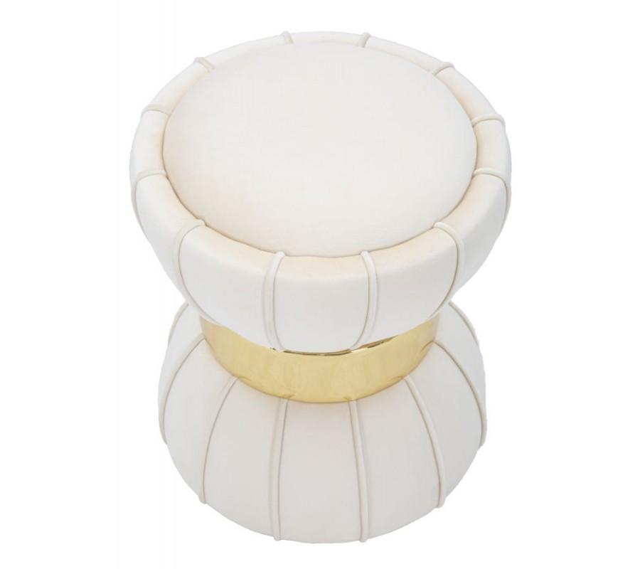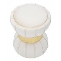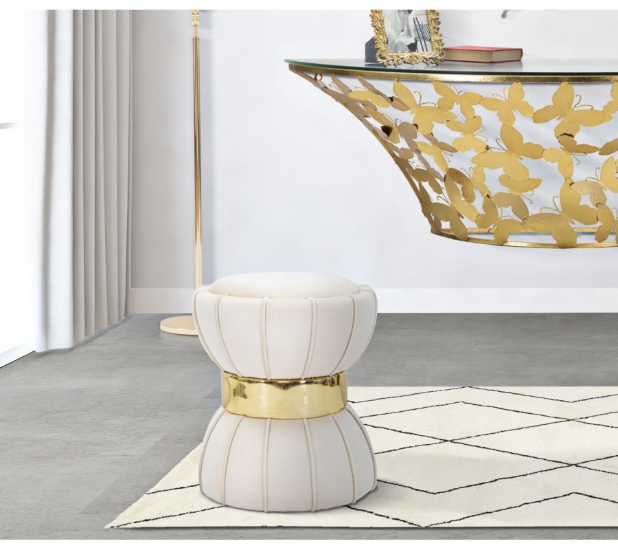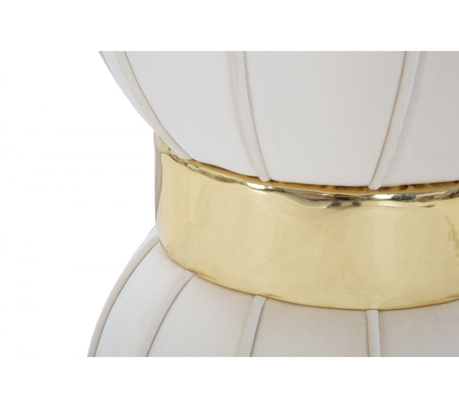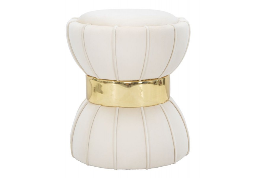 Dizajnová art deco zamatová taburetka Glamia Tapisé s čalúnením v krémovej farbe a zlatým detailom 40 cm