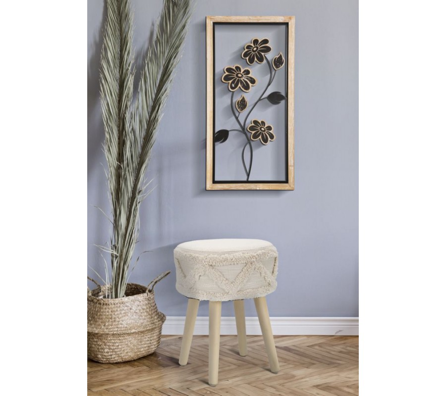Vďaka svojmu prírodnému vzhľadu a etno detailom sa hodí do bohémskych alebo škandinávsky ladených interiérov. Môže slúžiť ako doplnkové sedenie v obývačke, spálni či predsieni, prípadne ako malý odkladací stolík. Skvelo sa kombinuje s prírodnými materiálmi, ako je drevo, juta, ratan alebo ľan, a dopĺňa interiér ladený do neutrálnych alebo zemitých tónov.