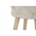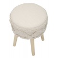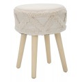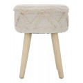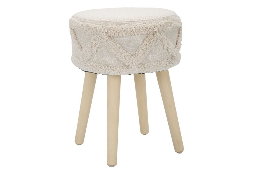 Dizajnová okrúhla etno taburetka Bolar s béžovým čalúnením a tuftovaným aztéckym vzorom so svetlohnedými drevenými nohami 41 cm