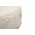 Okrúhla taburetka Bolar v béžovej farbe je vyrobená v etno štýle s aztéckym vzorom.