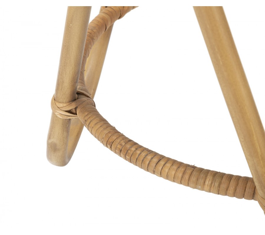 Nožičky sú vyrobené z kovu s ratanovým dizajnom v hnedej farbe a sú ohýbané do oblúkov, ktoré vytvárajú dekoratívny a stabilný základ. Na spodnej časti sa nachádza spevňujúci kruh, ktorý prepojuje jednotlivé časti konštrukcie a zvyšuje pevnosť taburetky. Spoje sú omotané ratanom.