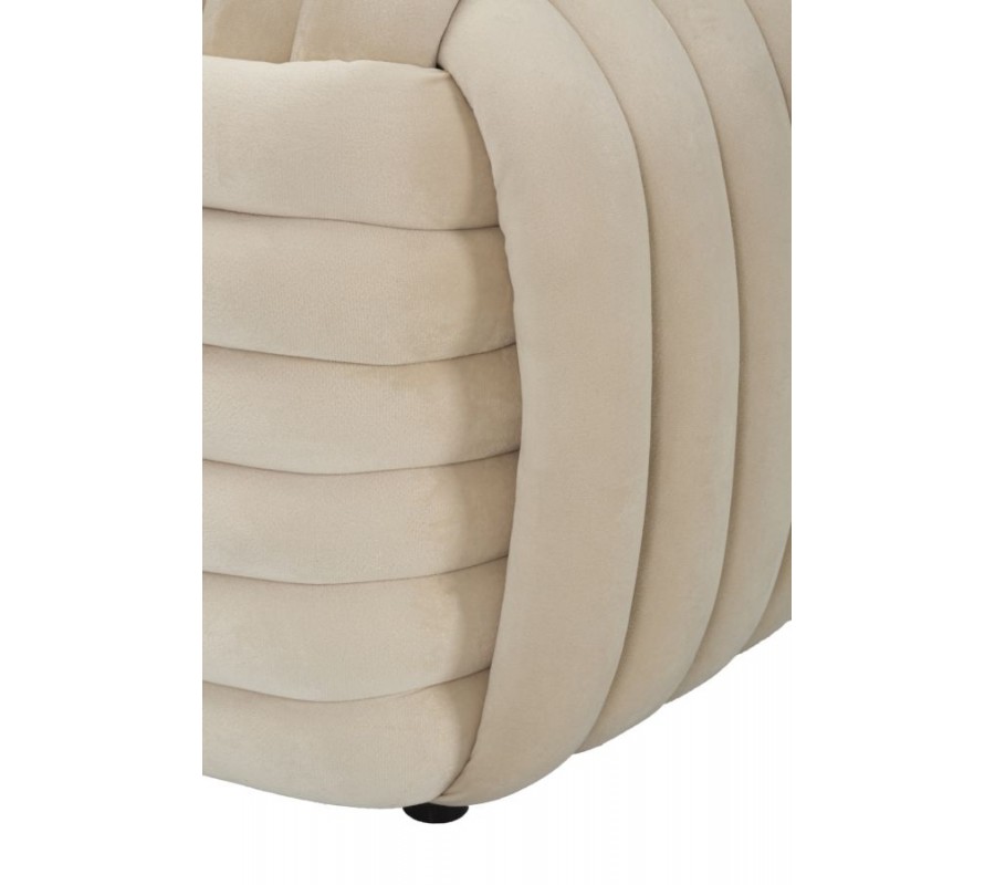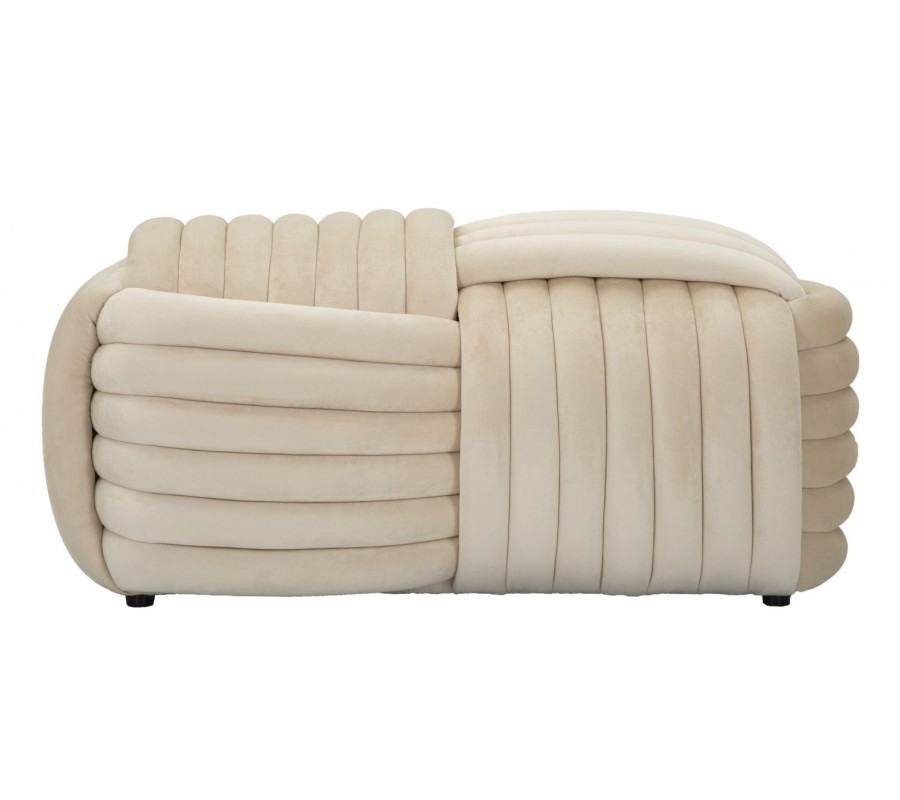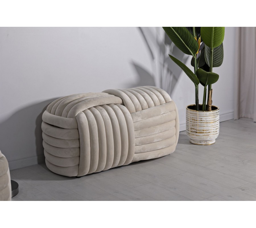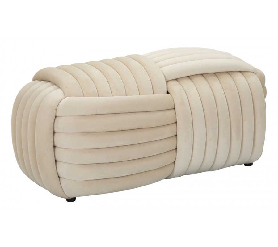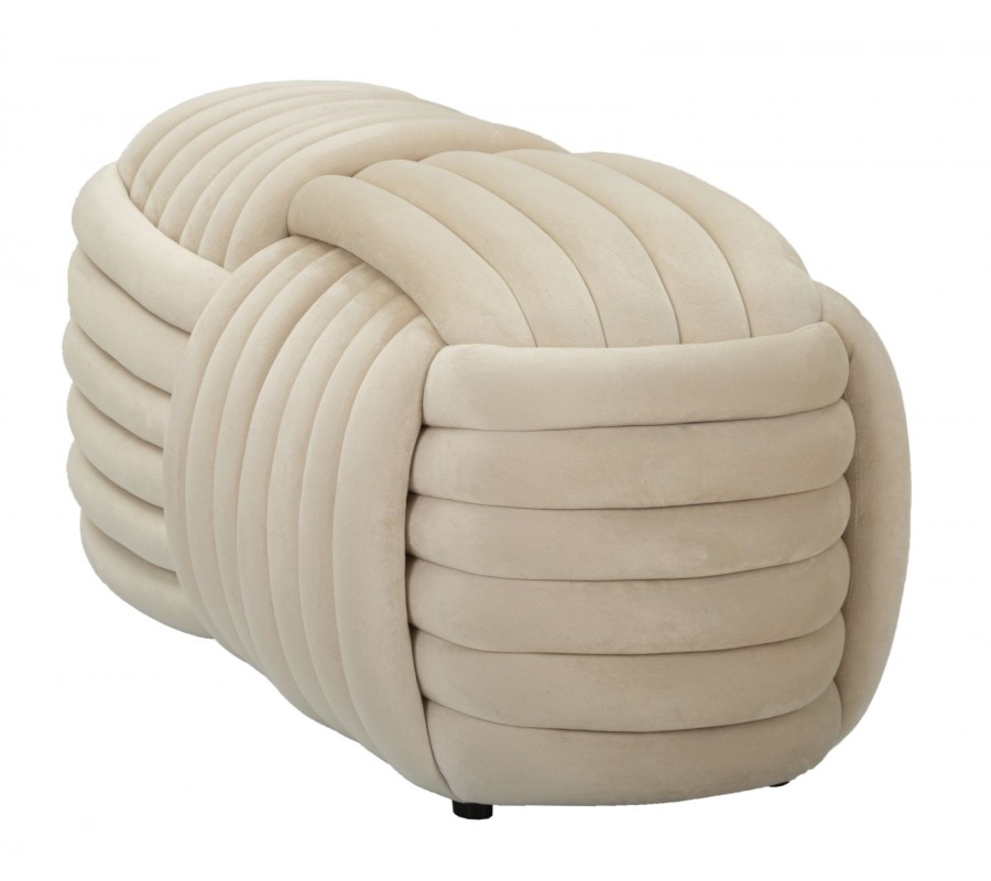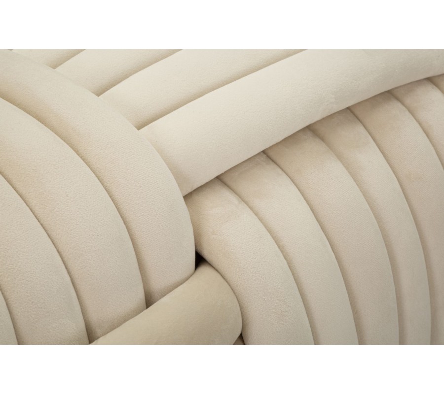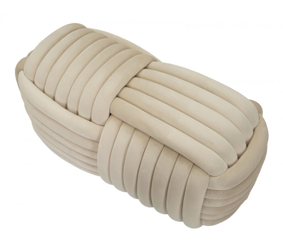 Dizajnová dvojmiestna obdĺžniková zamatová čalúnená béžovo krémova taburetka Nodo v tvare klbka 90 cm