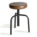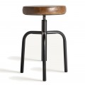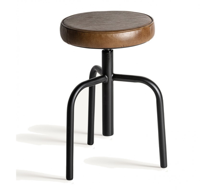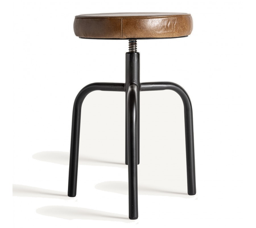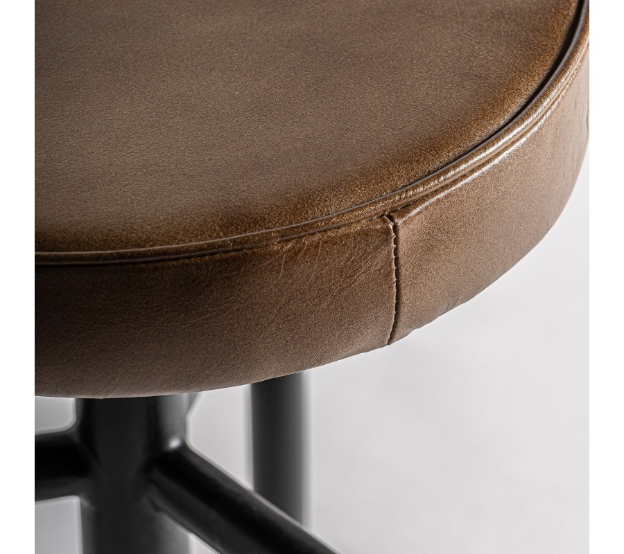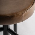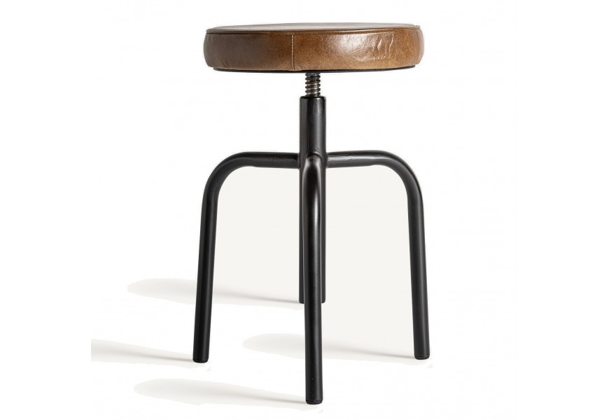 Industriálna kožená hnedá okrúhla výškovo nastaviteľná taburetka Mira s kovovými čiernymi nožičkami s vintage nádychom 75 cm