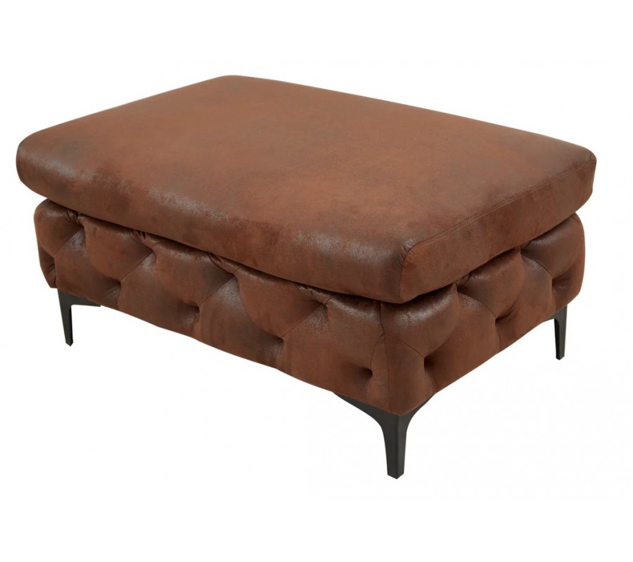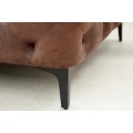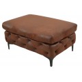 Chesterfield obdĺžniková hnedá kožená čalúnená prešívaná taburetka Modern Barock s čiernymi kovovými matnými nožičkami 90 cm