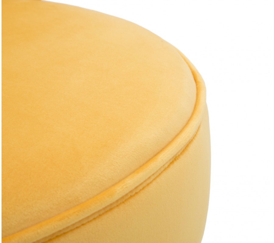 Dizajnové art deco okrúhle kreslo Laurentia s nízkou opierkou so žltým zamatovým poťahom a zlatým detailom 62 cm