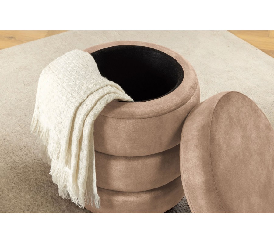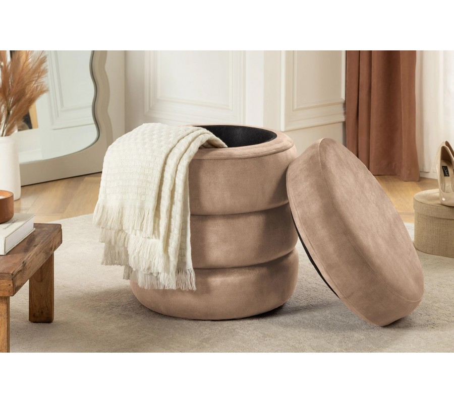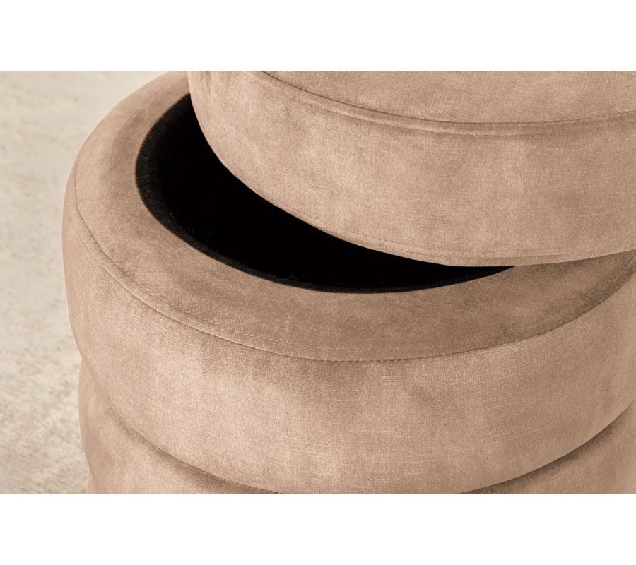 Okrúhla moderná taburetka Eliana s vrstveným dizajnom a úložným priestorom so šampanským zamatovým poťahom 49 cm