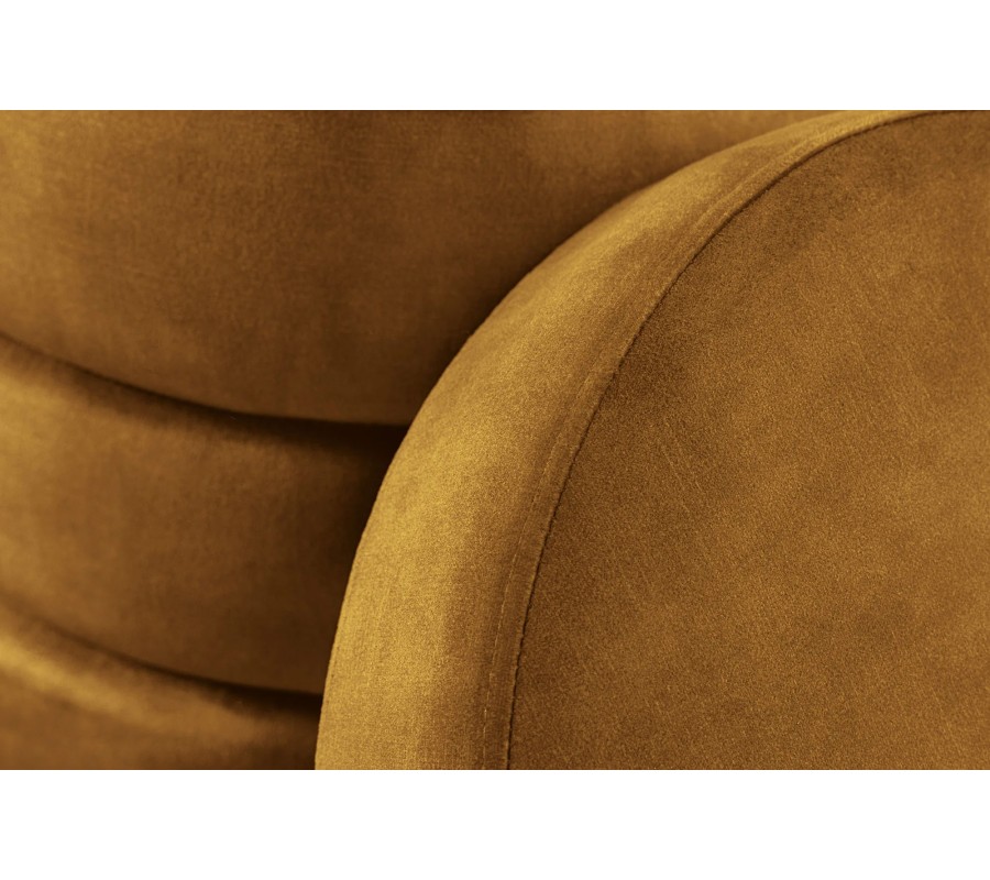 Na prvý pohľad vás zaujme poťah v krásnom horčicovom odtieni žltej. Zamatový finiš má jemný lesk a látka tak pôsobí až zlatistým dojmom. Poťah je príjemný na dotyk a mikrovlákno mu zaručuje dlhú životnosť a odolnosť voči vplyvom každodenného používania.