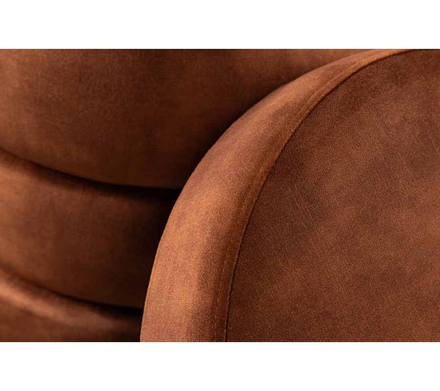 Poťah je vyrobený z mikrovlákna, ktoré je odolné a nenáročné na údržbu. Zároveň je príjemné na dotyk a jeho jemný lesk výborne korešponduje s hrdzavou hnedou farbou, ktorá pôsobí teplým a útulným dojmom.