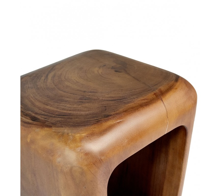 Suarové drevo je mimoriadne pevné a odolné. Prepožičiava taburetke krásnu bohatú hnedú farbu, ktorá pôsobí teplým dojmom. Povrch má výraznú štruktúru letokruhov, s naturálnymi uzlami a prasklinami, ktoré dodávajú každému kusu unikátny vzhľad.